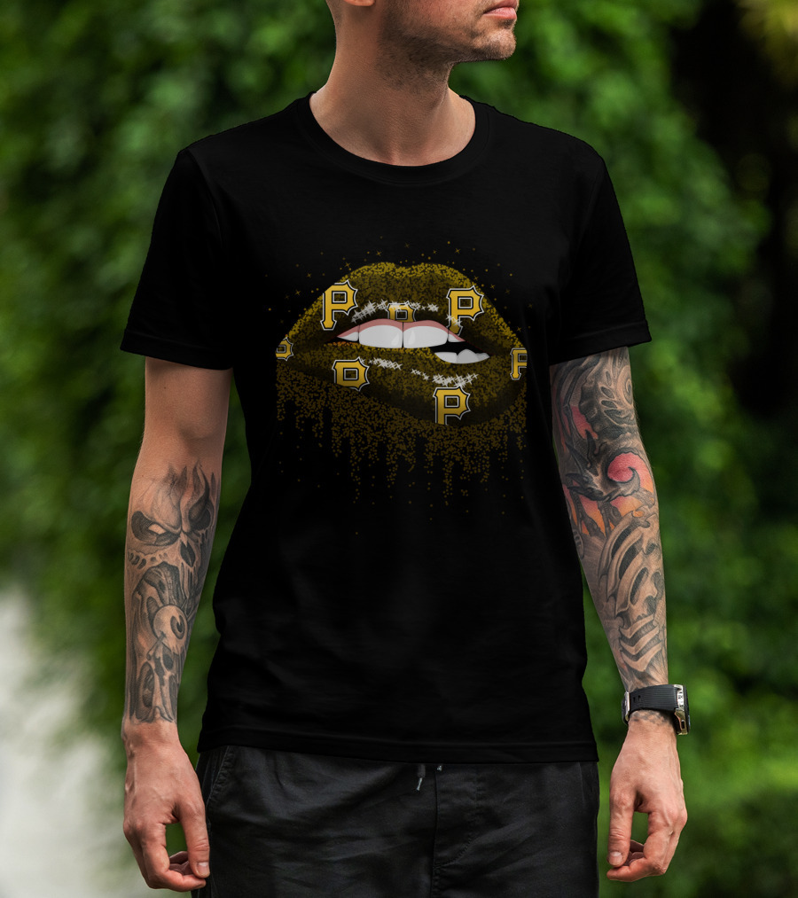 Pittsburgh Pirates Glittery Lips Fan Design With Iconic P Logo Elements T-Shirt