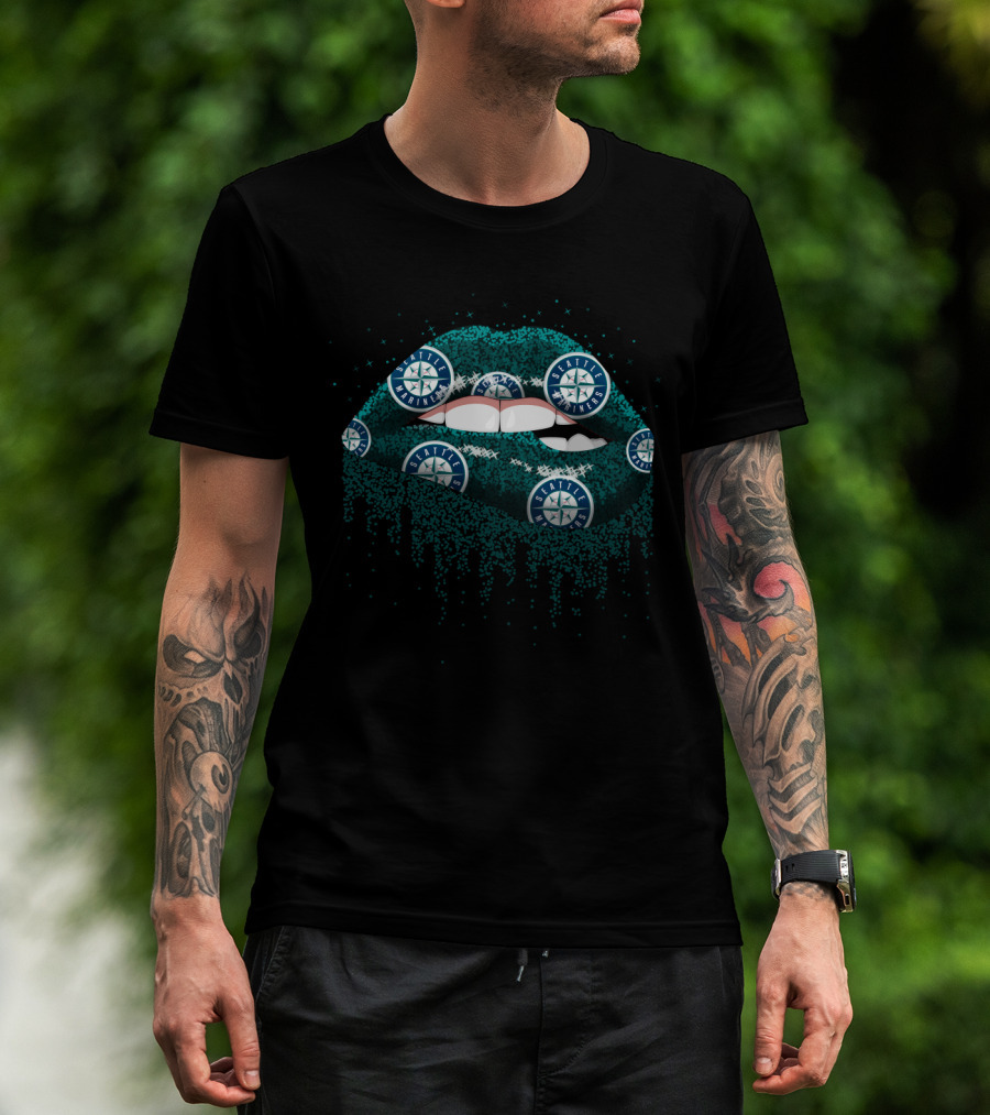 Seattle Mariners Glitter Lips Fan Art With Team T-Shirt
