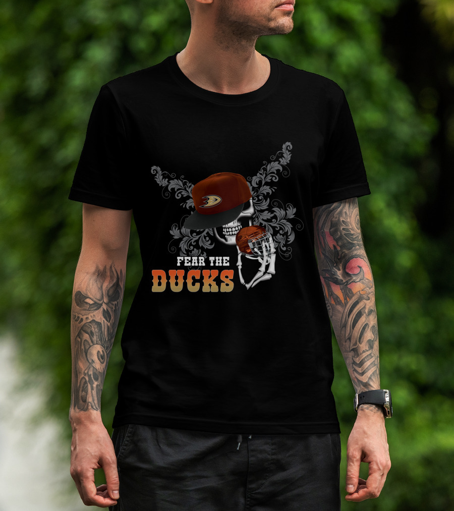 Fear The Anaheim Ducks Skull With Hockey Helmet And Cap T-Shirt