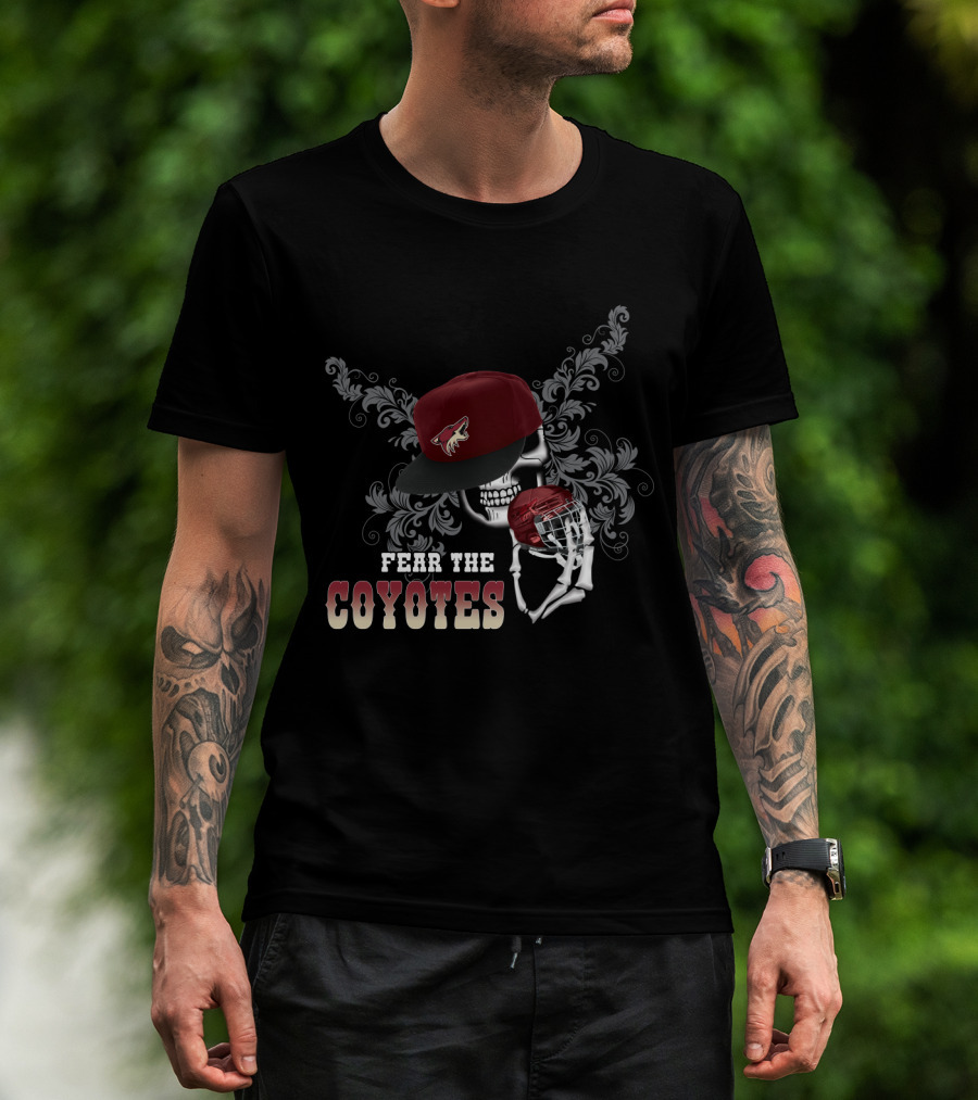 Fear The Coyotes Skull With Hockey Helmet And Hat T-Shirt