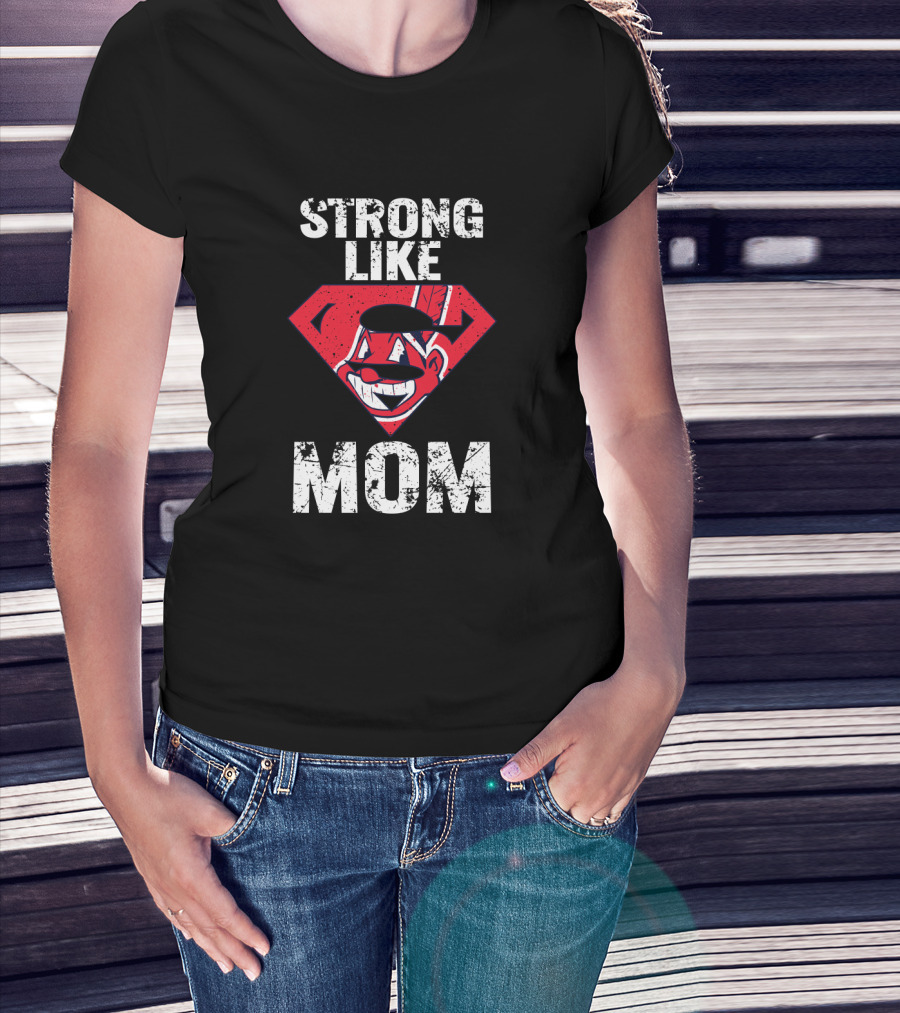 Strong Like Mom Cleveland Indians Superman Logo Mascot T-Shirt