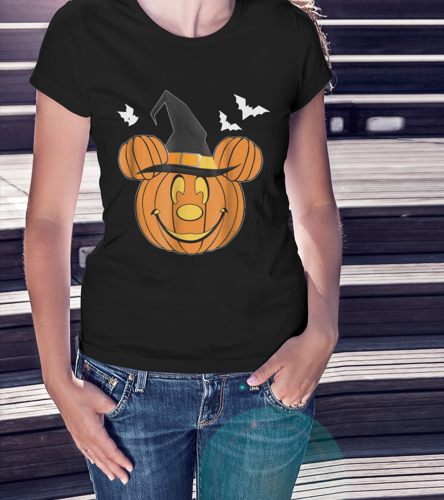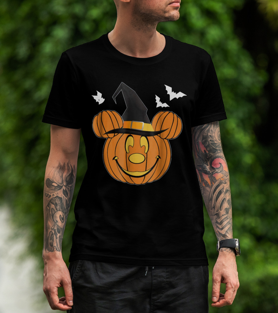 Disney Mickey Mouse Halloween Pumpkin Witch Hat And Bats T-Shirt