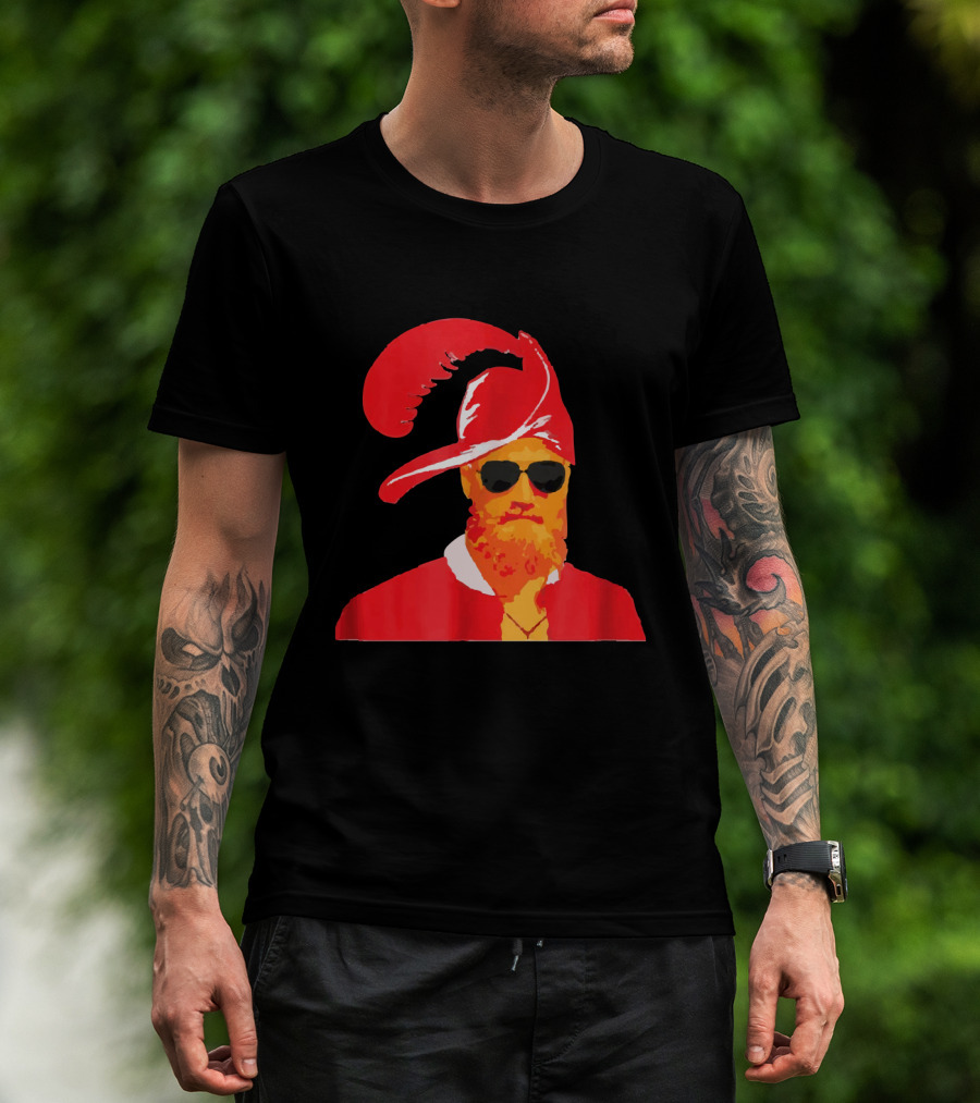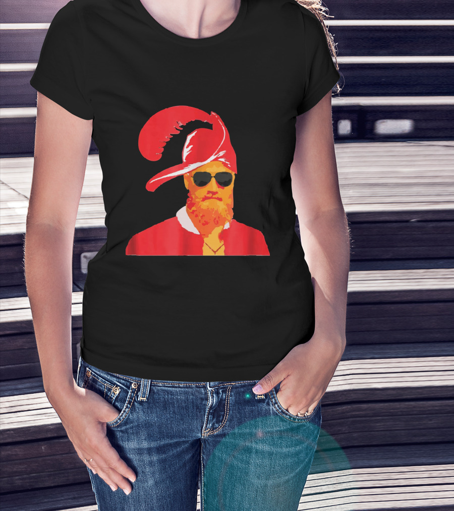 Fitzmagic Pirate Santa With Sunglasses Iconic Beard Red Feather Hat T-Shirt