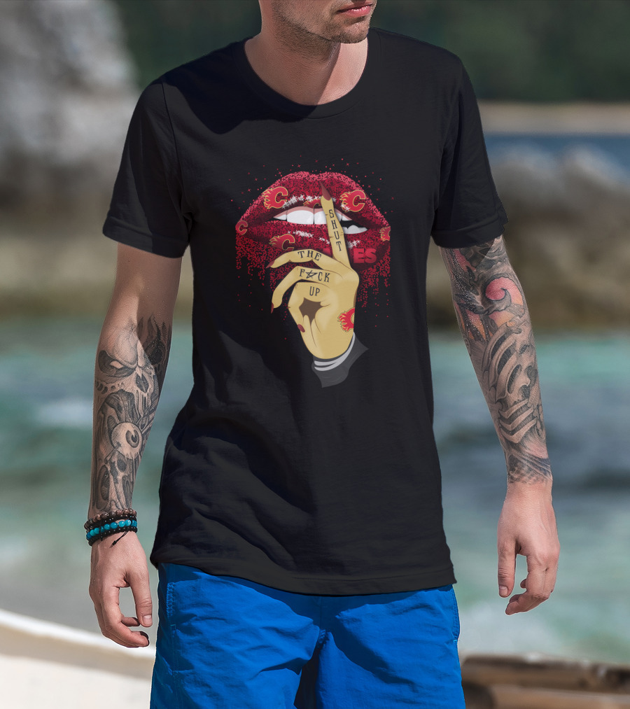 Shut Up Calgary Flames Glitter Lips Fan Art With Bold Lettering And Team T-Shirt