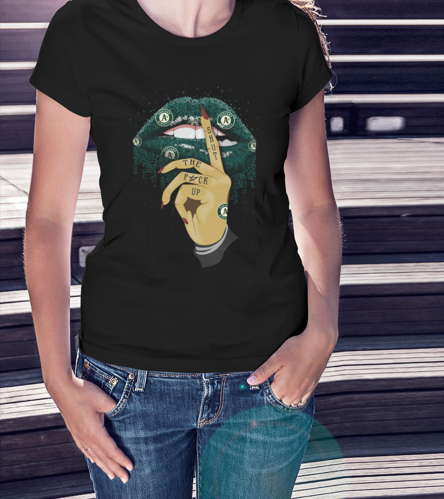 Oakland Athletics Fans Glitter Lip Shut The F⚡ck Up T-Shirt