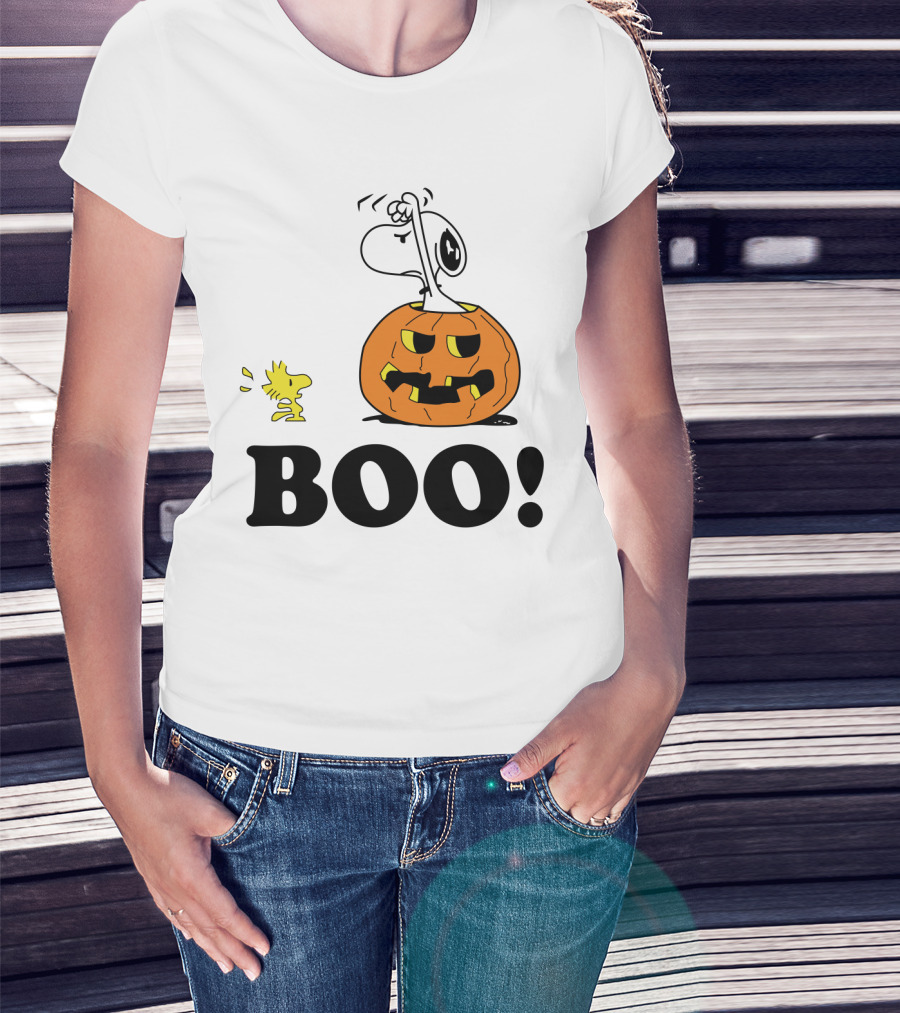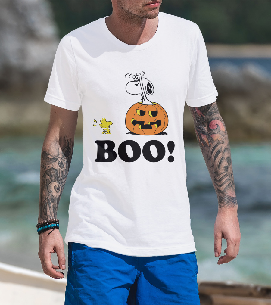 Peanuts Halloween Snoopy And Woodstock In Pumpkin BOO T-Shirt