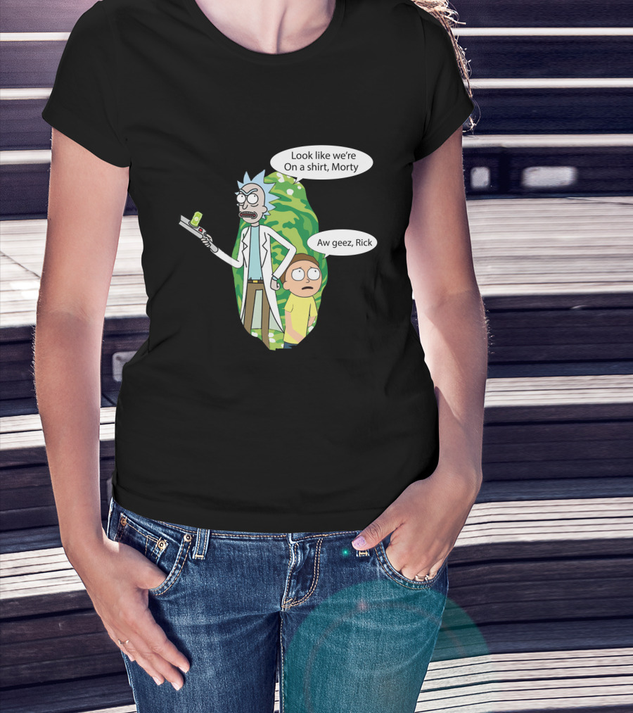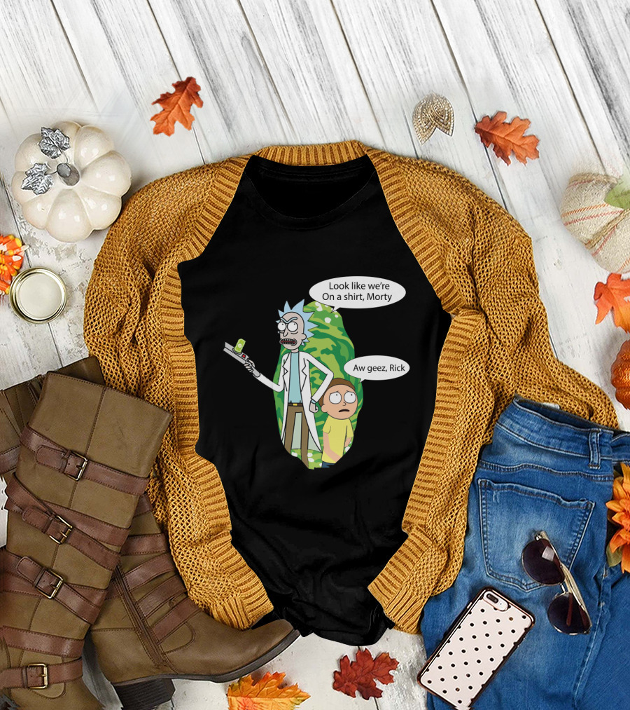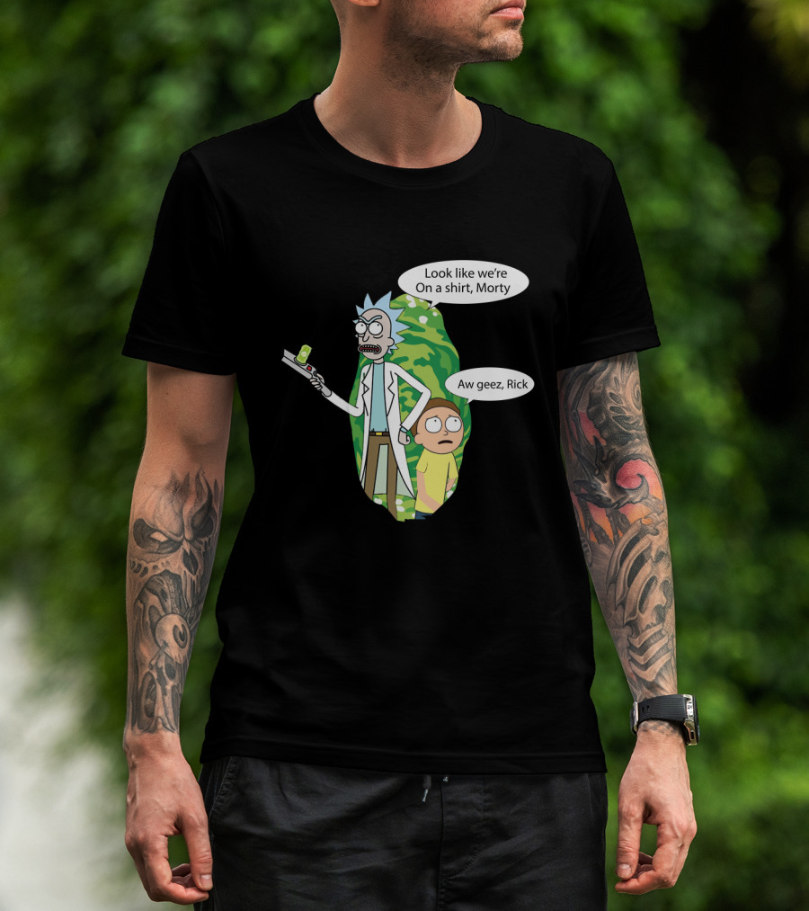 The Rick Morty Portal Gun Look Like We're on a Shirt Morty Aw Geez Rick T-shirt is designed for everyday wear and a consistent fit. Fabric is pre-shrunk ring-spun cotton with durable stitching. See the size chart below for exact measurements.