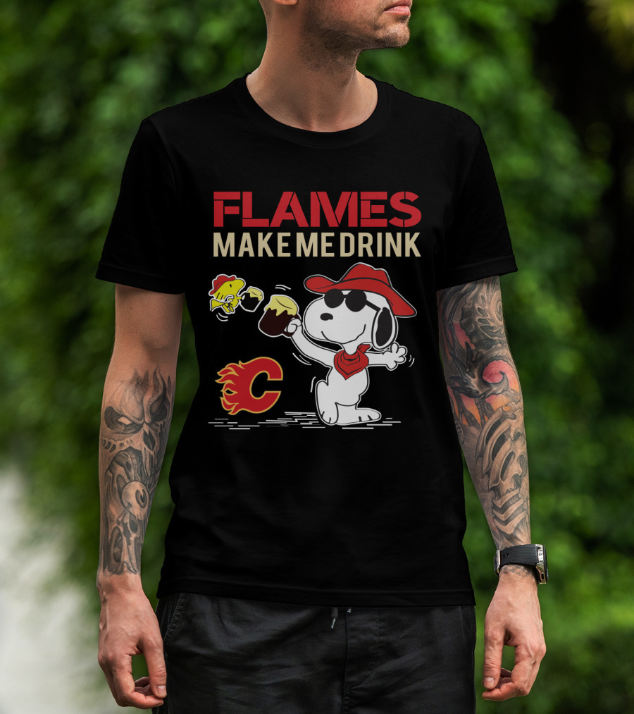Snoopy Calgary Flames Make Me Drink With Flames T-Shirt