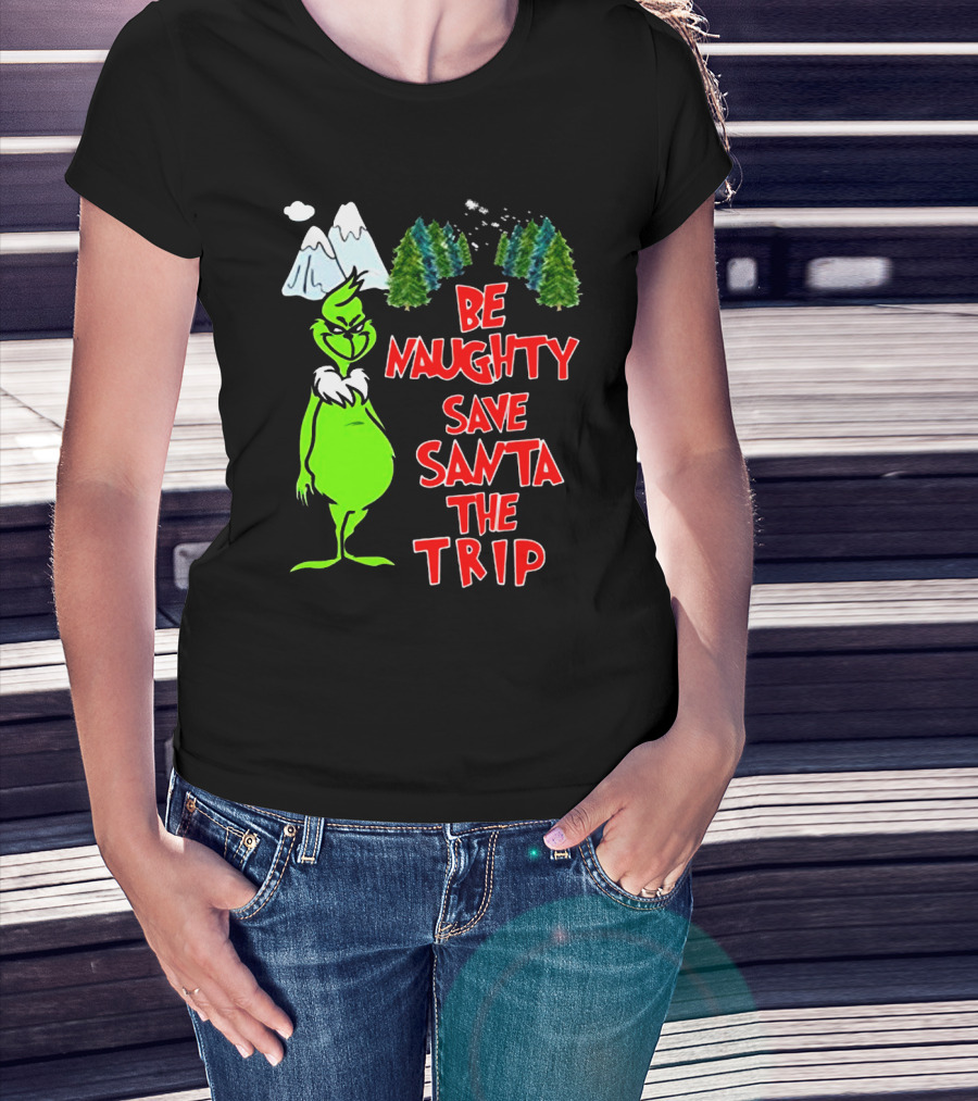 Grinch Be Naughty Save Santa The Trip Christmas Humor Mountaintop Trees T-Shirt
