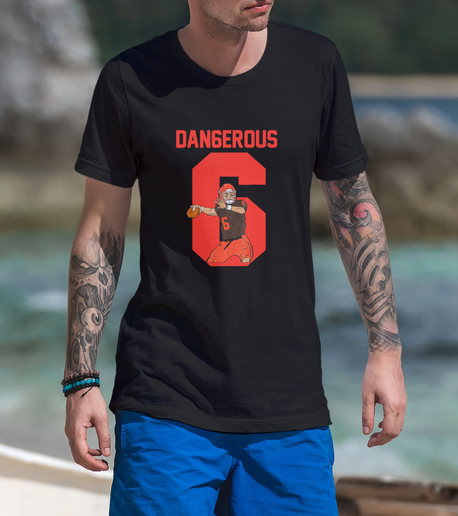 The Dangerous Quarterback Number 6 T-shirt is designed for everyday wear and a consistent fit. Fabric is pre-shrunk ring-spun cotton with durable stitching. See the size chart below for exact measurements.