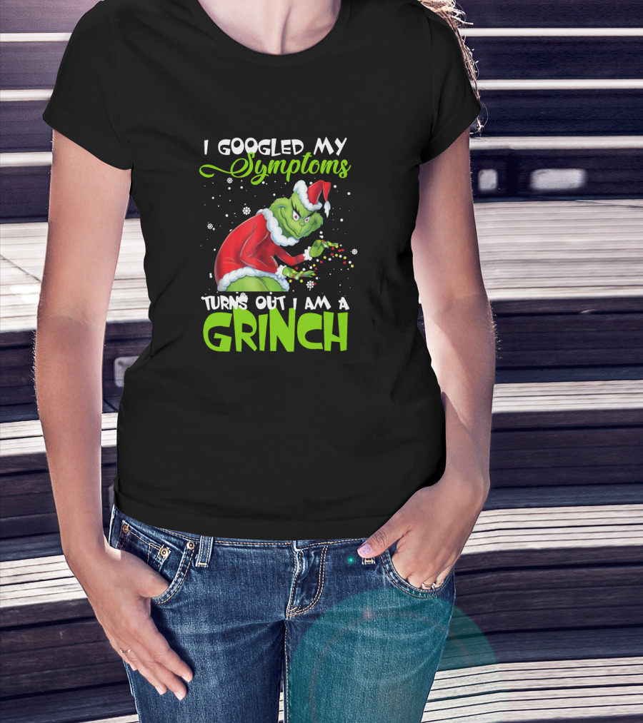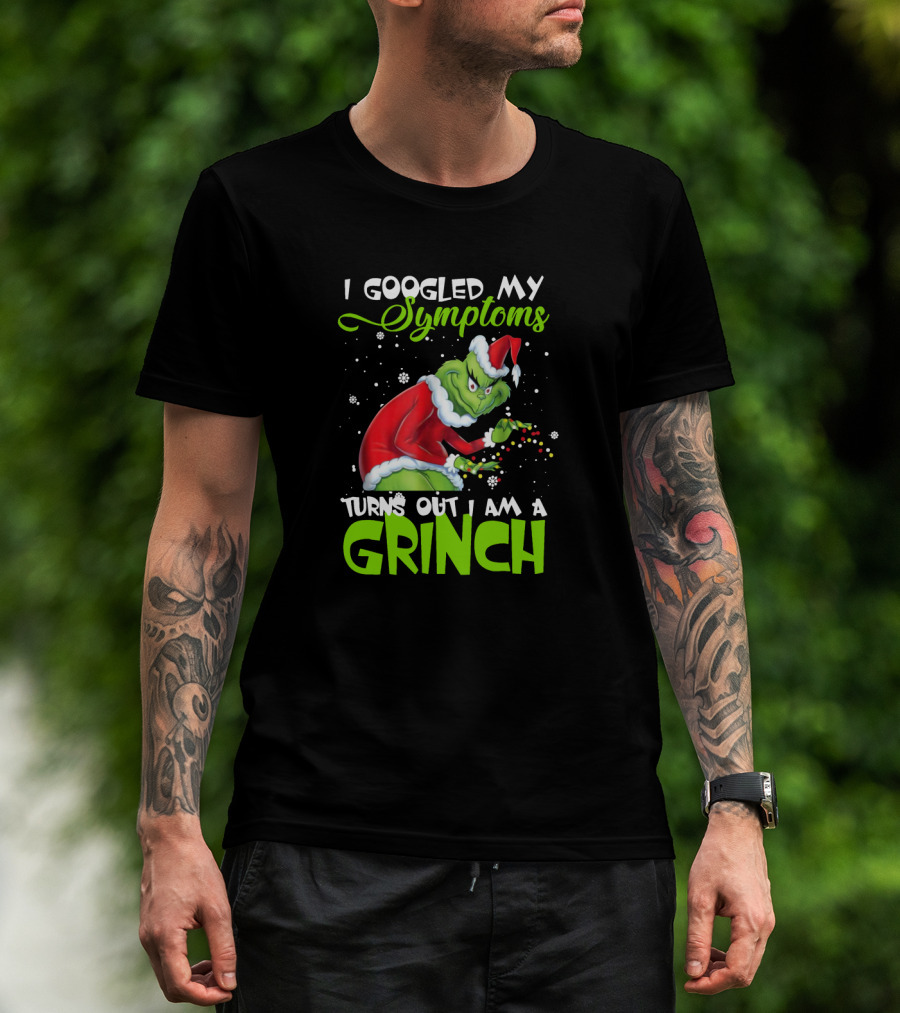The I Googled My Symptoms Turns Out I Am A Grinch Santa Hat Snowflakes T-shirt is designed for everyday wear and a consistent fit. Fabric is pre-shrunk ring-spun cotton with durable stitching. See the size chart below for exact measurements.