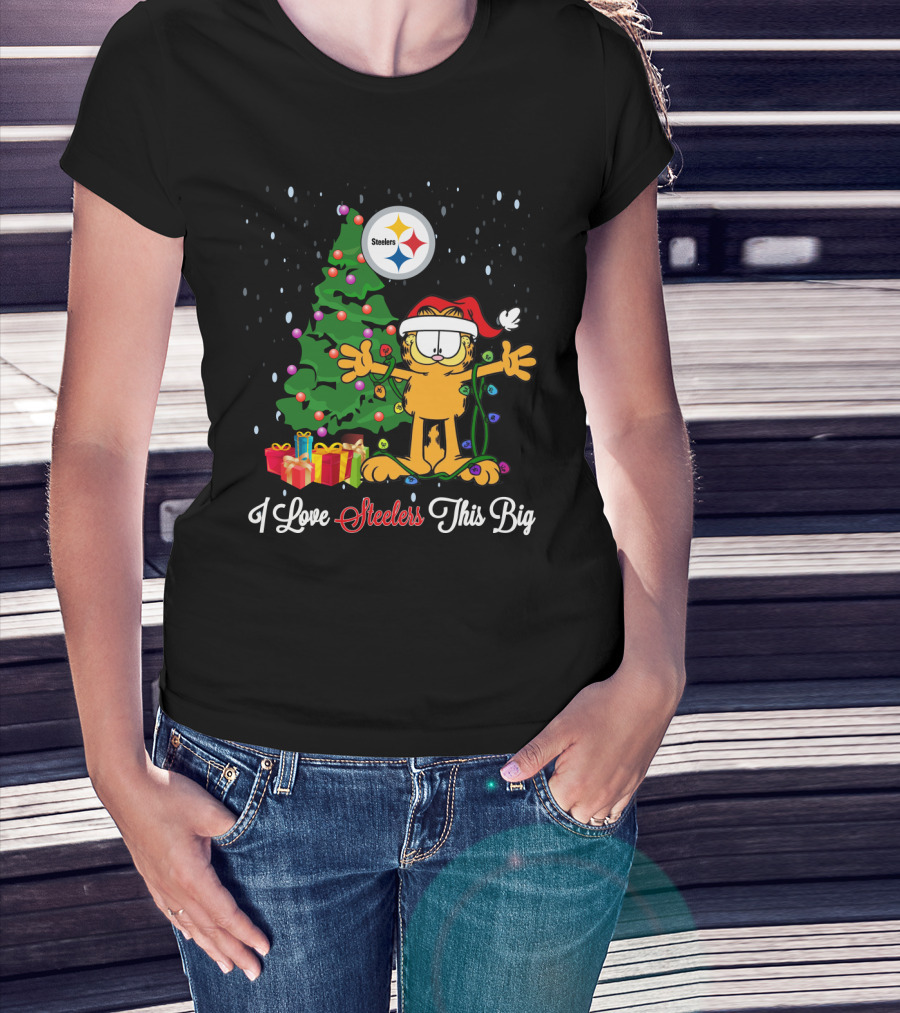 The Pittsburgh Steelers Holiday Cheer I Love Steelers This Big Christmas Tree and Gifts T-shirt is designed for everyday wear and a consistent fit. Fabric is pre-shrunk ring-spun cotton with durable stitching. See the size chart below for exact measurements.