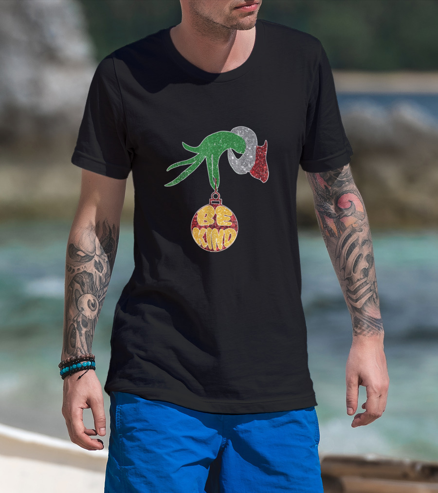 Be Kind Christmas Glitter Ornament Hand T-Shirt