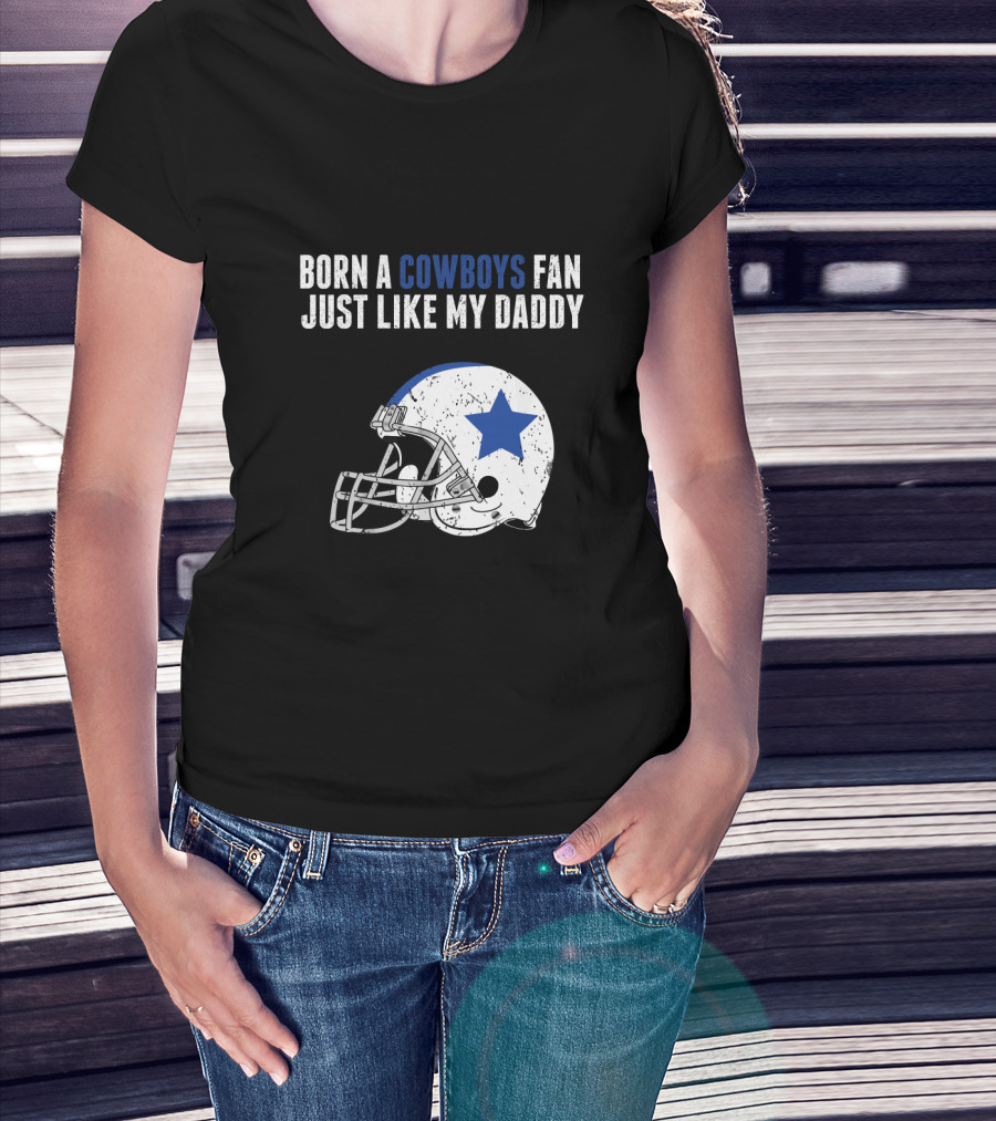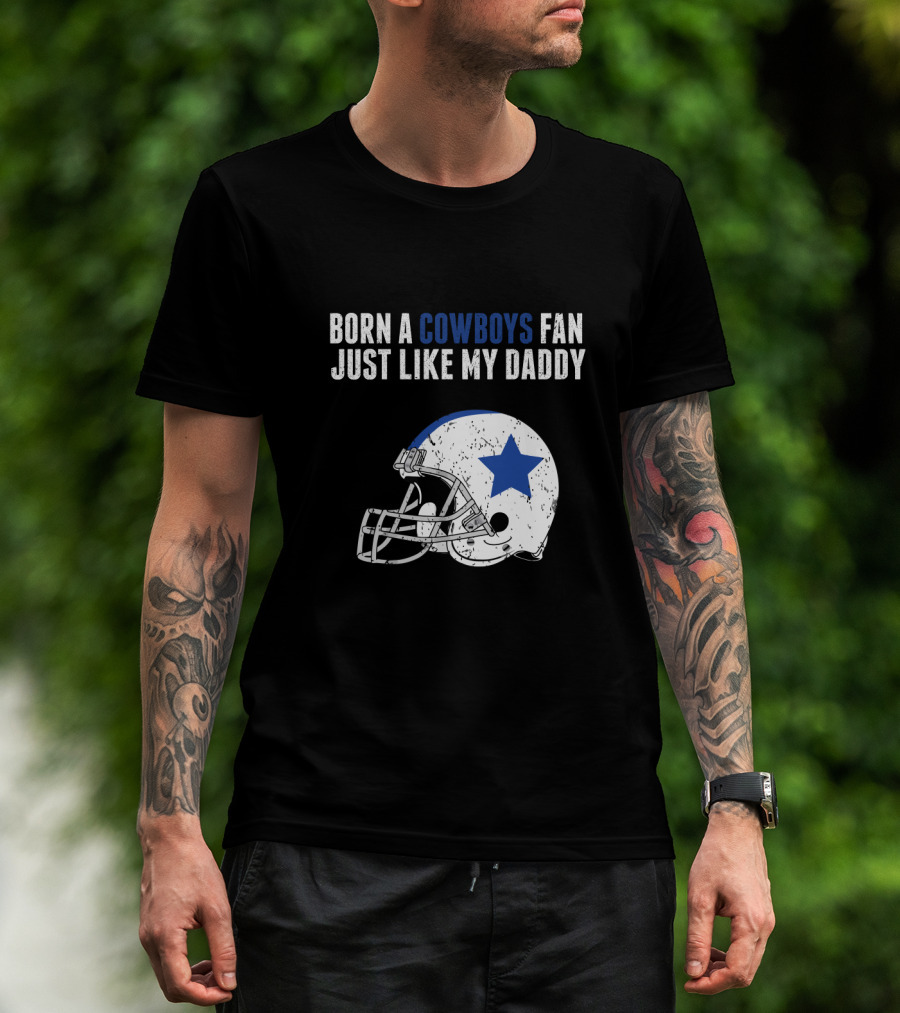 Born A Cowboys Fan Just Like My Daddy Helmet Design NFL T-Shirt
