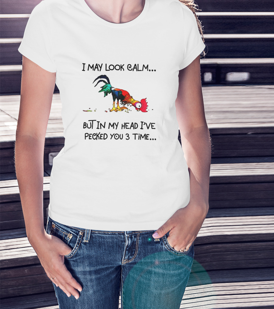 I May Look Calm But In My Head I've Pecked You 3 Times Cartoon Rooster T-Shirt