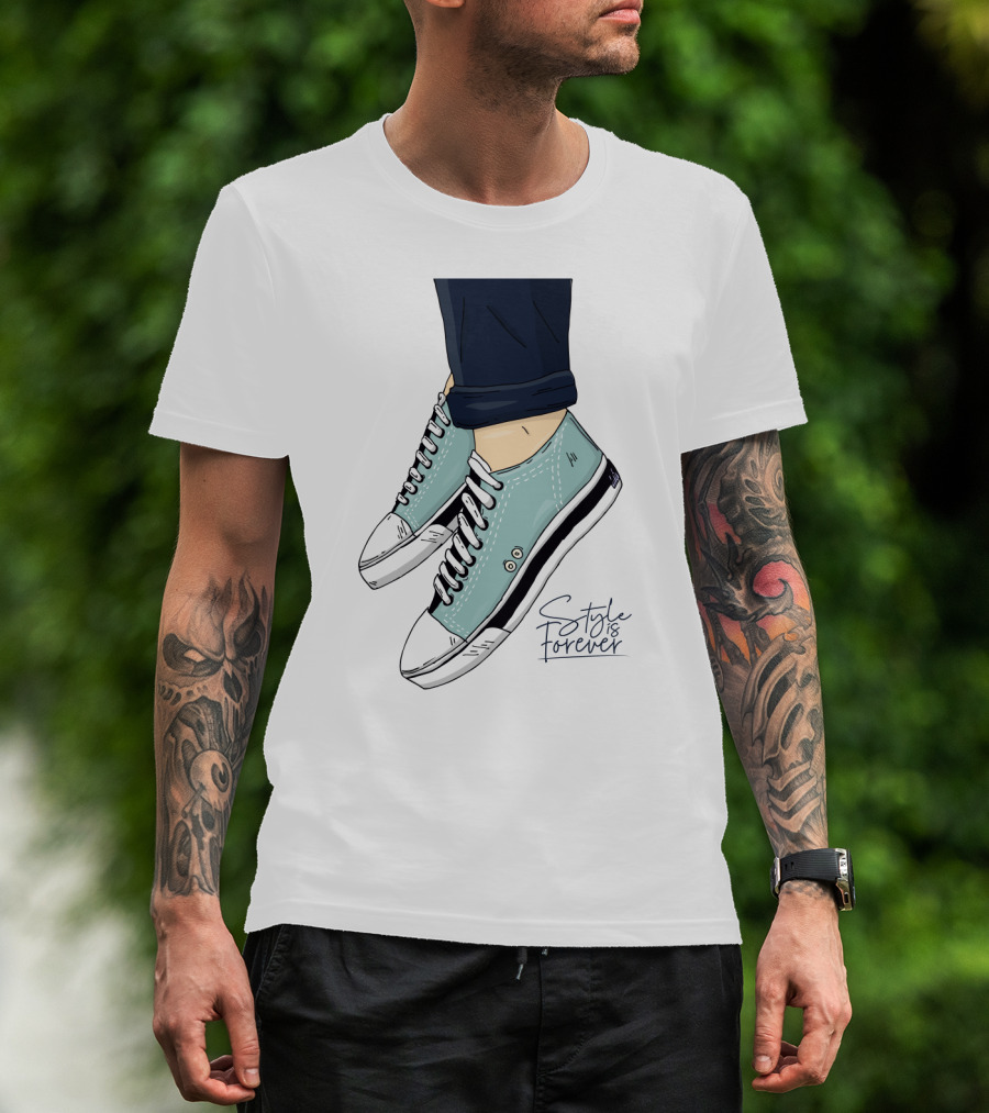 Style Is Forever Light Blue Sneakers Illustration With Classic Laced T-Shirt