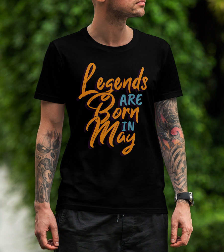Legends Are Born In May Bold Colorful Script T-Shirt