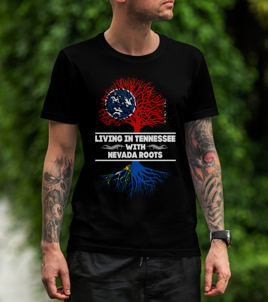 Tennessee Living With Nevada Roots: Dual State Pride Tree Design Featuring Tennessee Flag Iconography T-Shirt