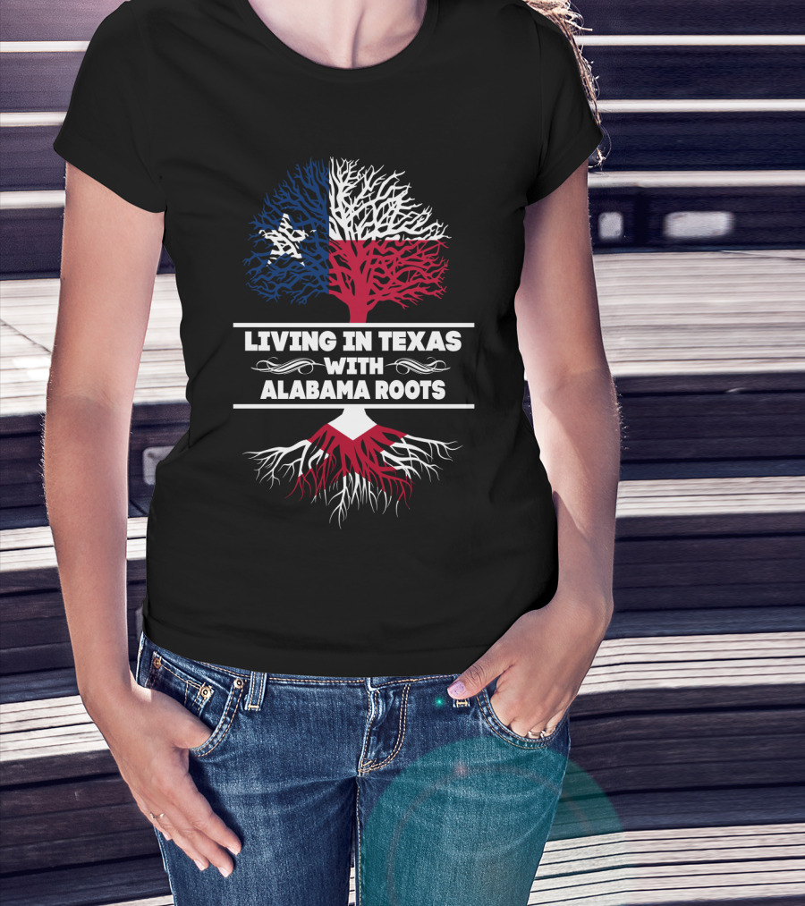 Texas Living Deep Alabama Heritage Flag Roots Tree T-Shirt