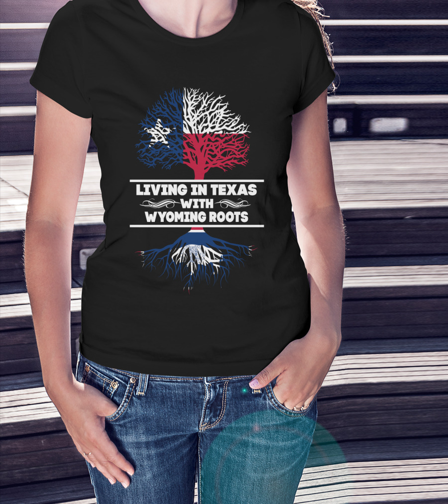 Texas And Wyoming Heritage With State Flag Tree Roots Symbolism T-Shirt