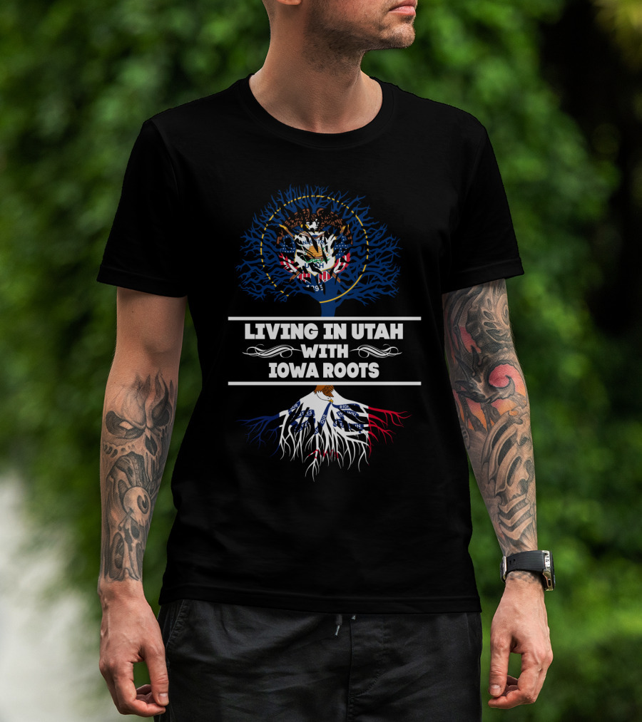 Utah State Emblem Above Iowa Flag Roots Illustration Living In Utah With Iowa Roots T-Shirt