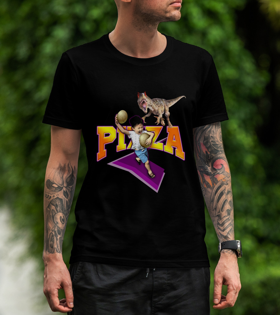 Pizza Dinosaur Adventure: The Running Child With Eggs T-Shirt