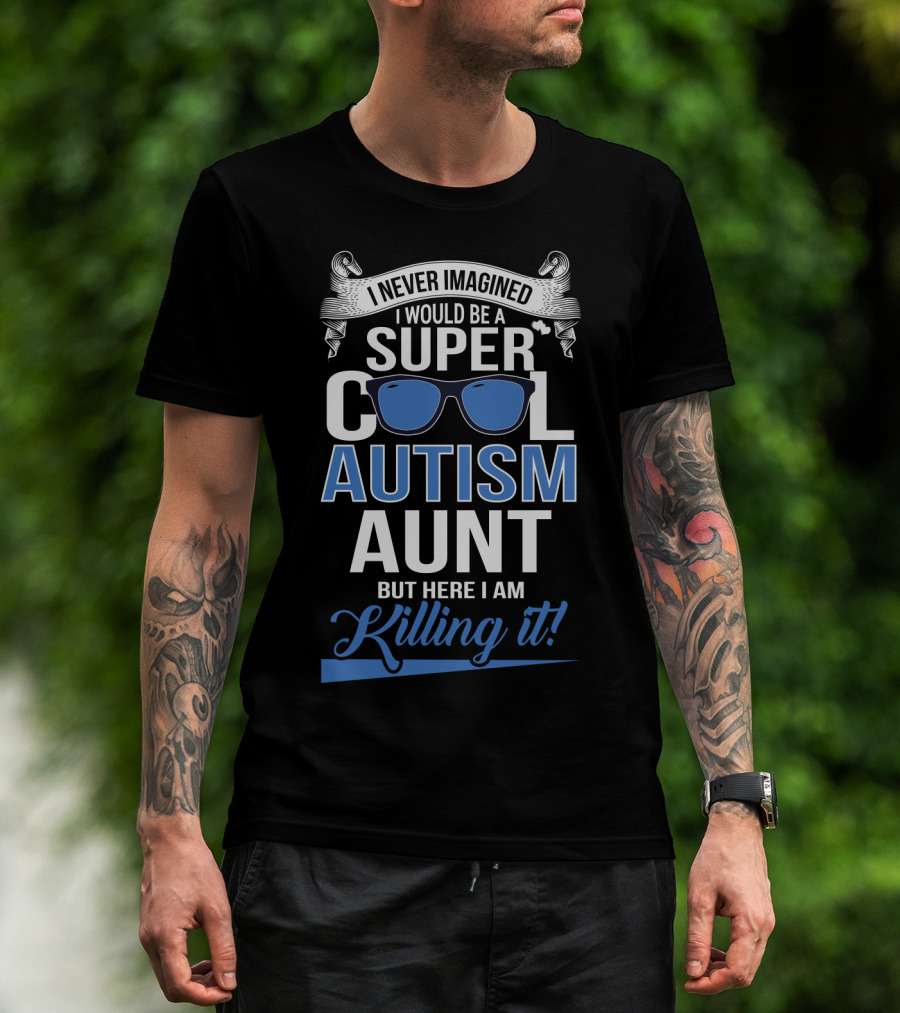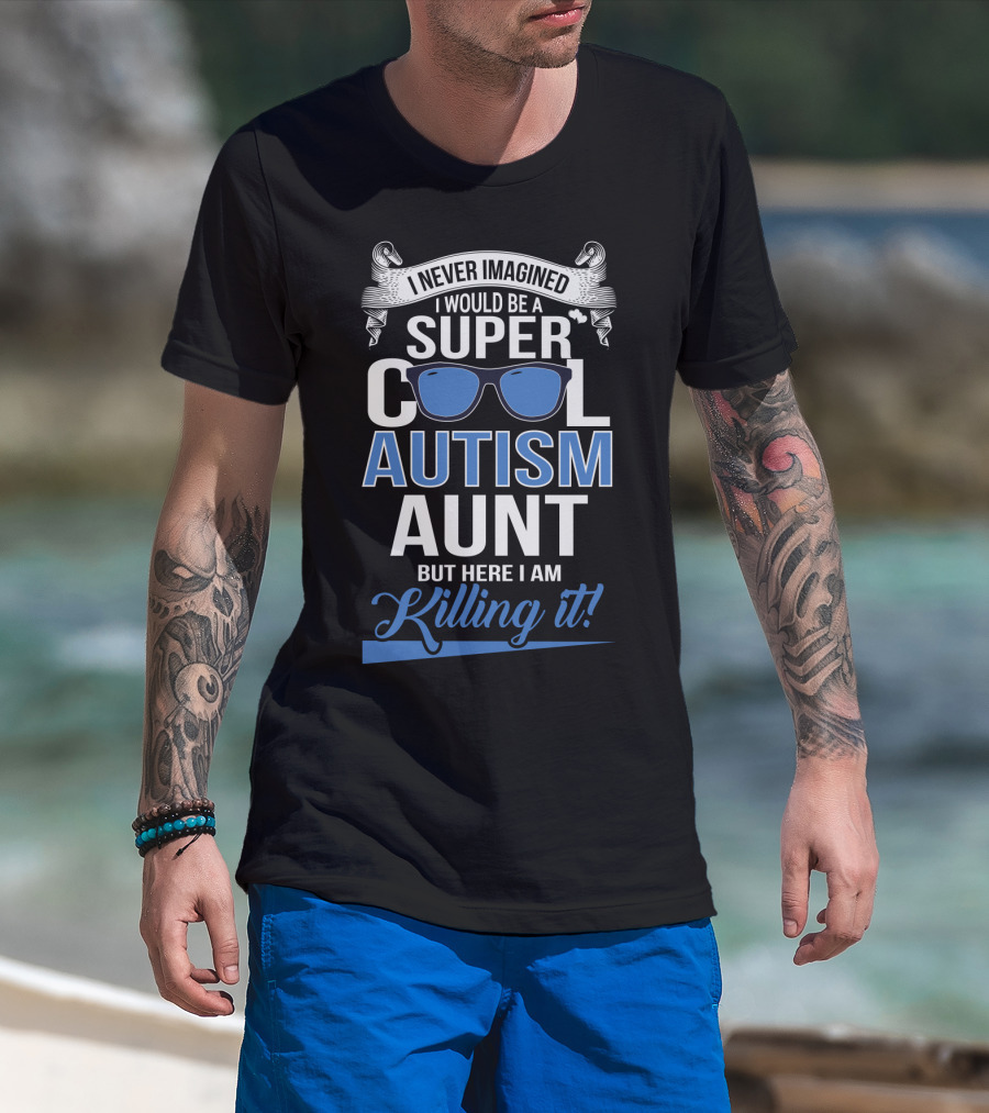 Never Imagined I Would Be A Super Cool Autism Aunt But Here I Am Killing It T-Shirt
