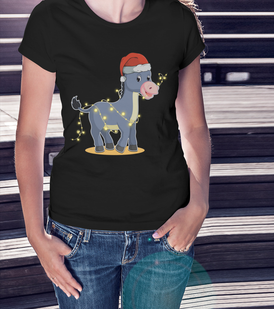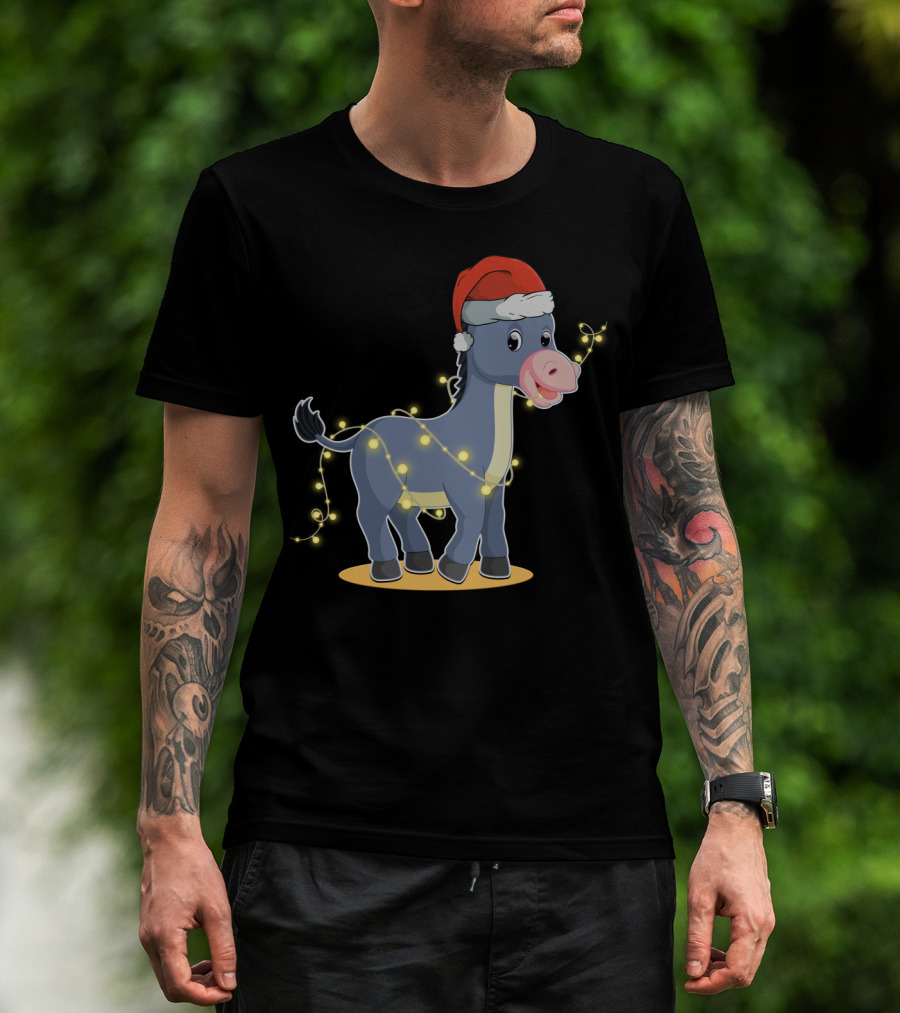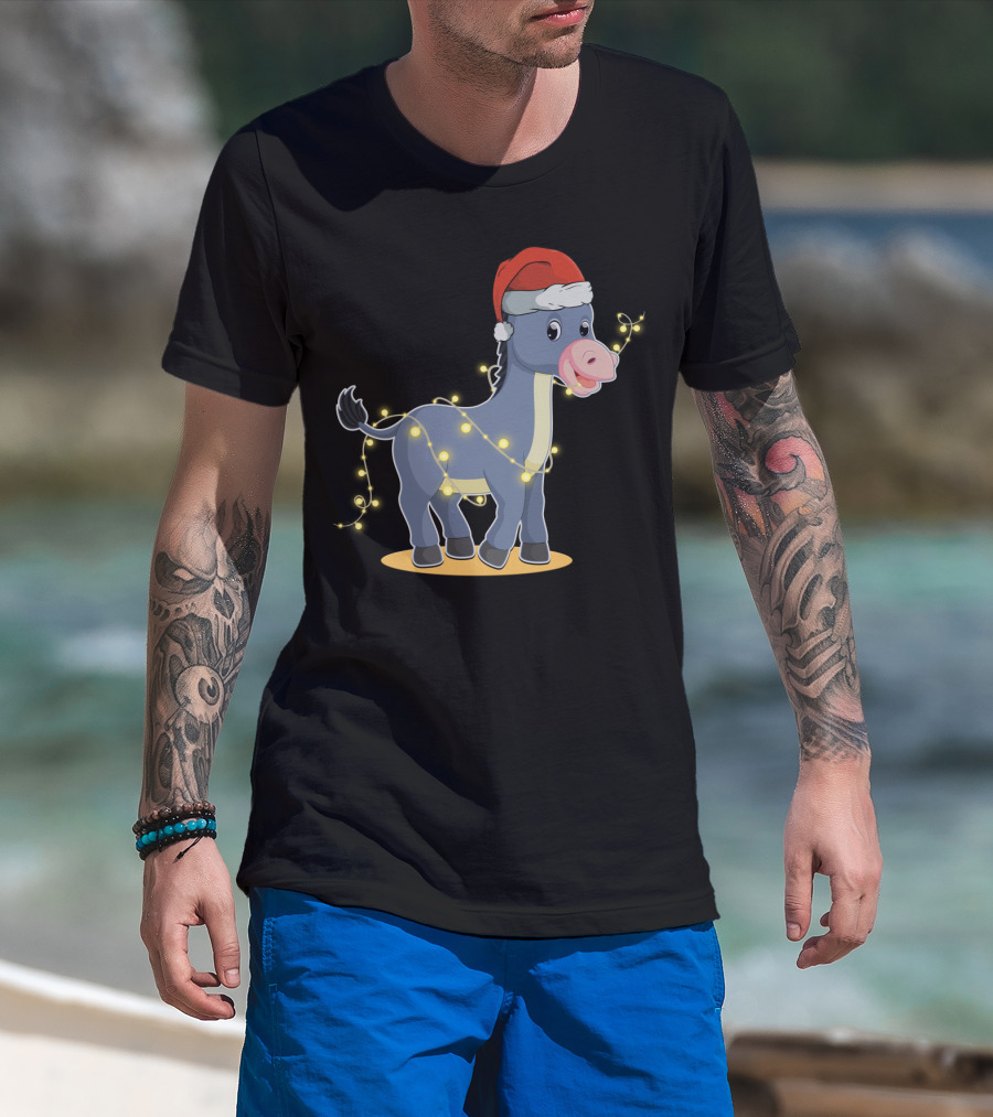 Christmas Lights Donkey With Santa Hat Holiday T-Shirt