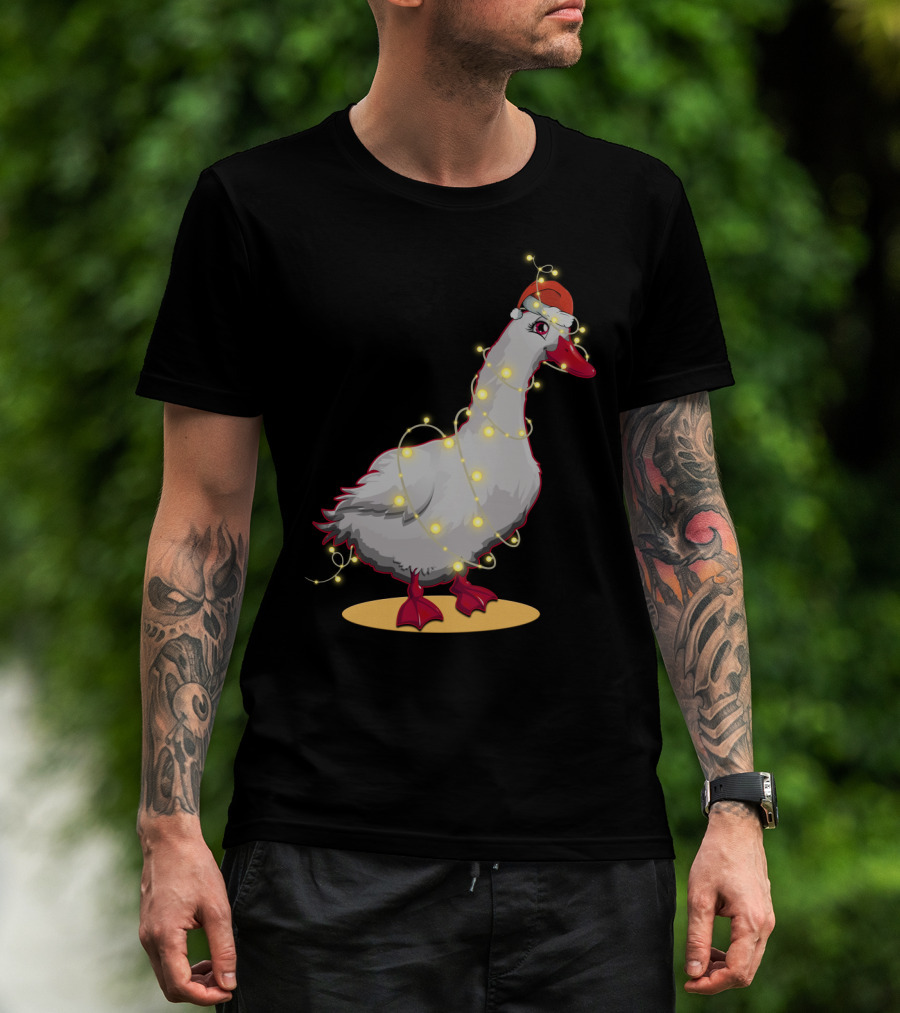 The Christmas Lights Duck Wrapped in Festive String with Santa Hat T-shirt is designed for everyday wear and a consistent fit. Fabric is pre-shrunk ring-spun cotton with durable stitching. See the size chart below for exact measurements.