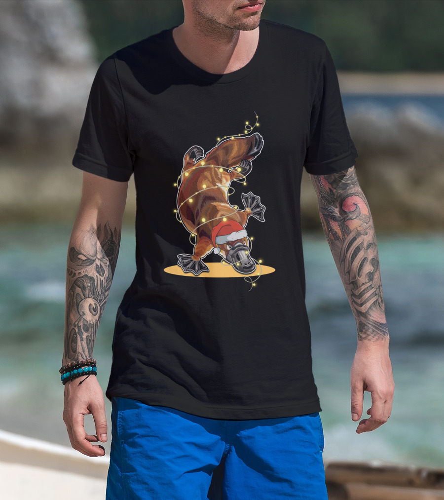 Christmas Lights Platypus Santa Hat Holiday Festive Decor T-Shirt
