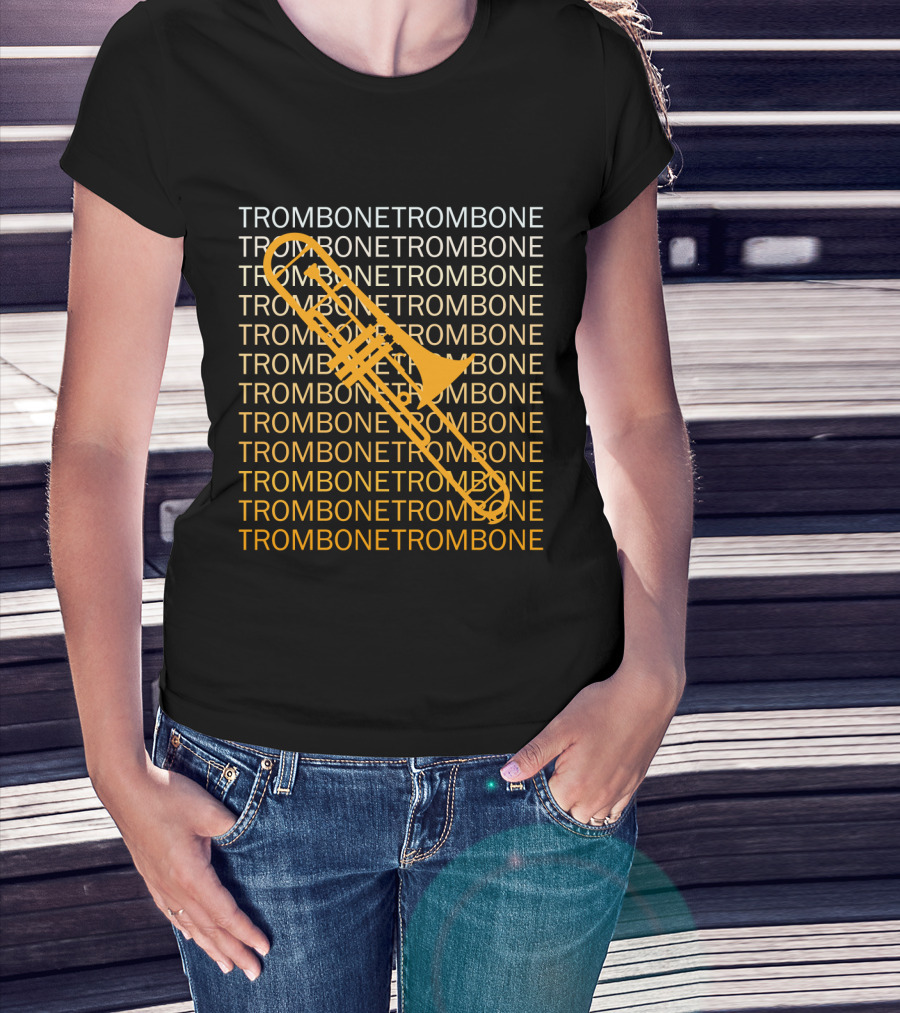 Trombone Repeated Pattern With Bold Yellow Trombone T-Shirt