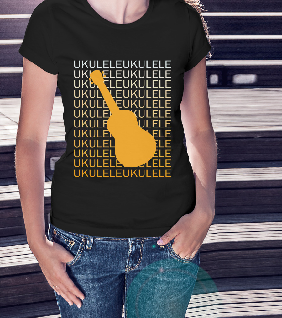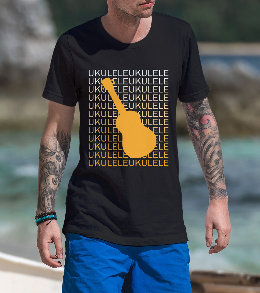 Repeating Ukulele Text With Orange Ukulele T-Shirt
