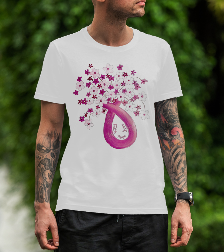Faith Hope Love Pink Ribbon Flower Bouquet T-Shirt