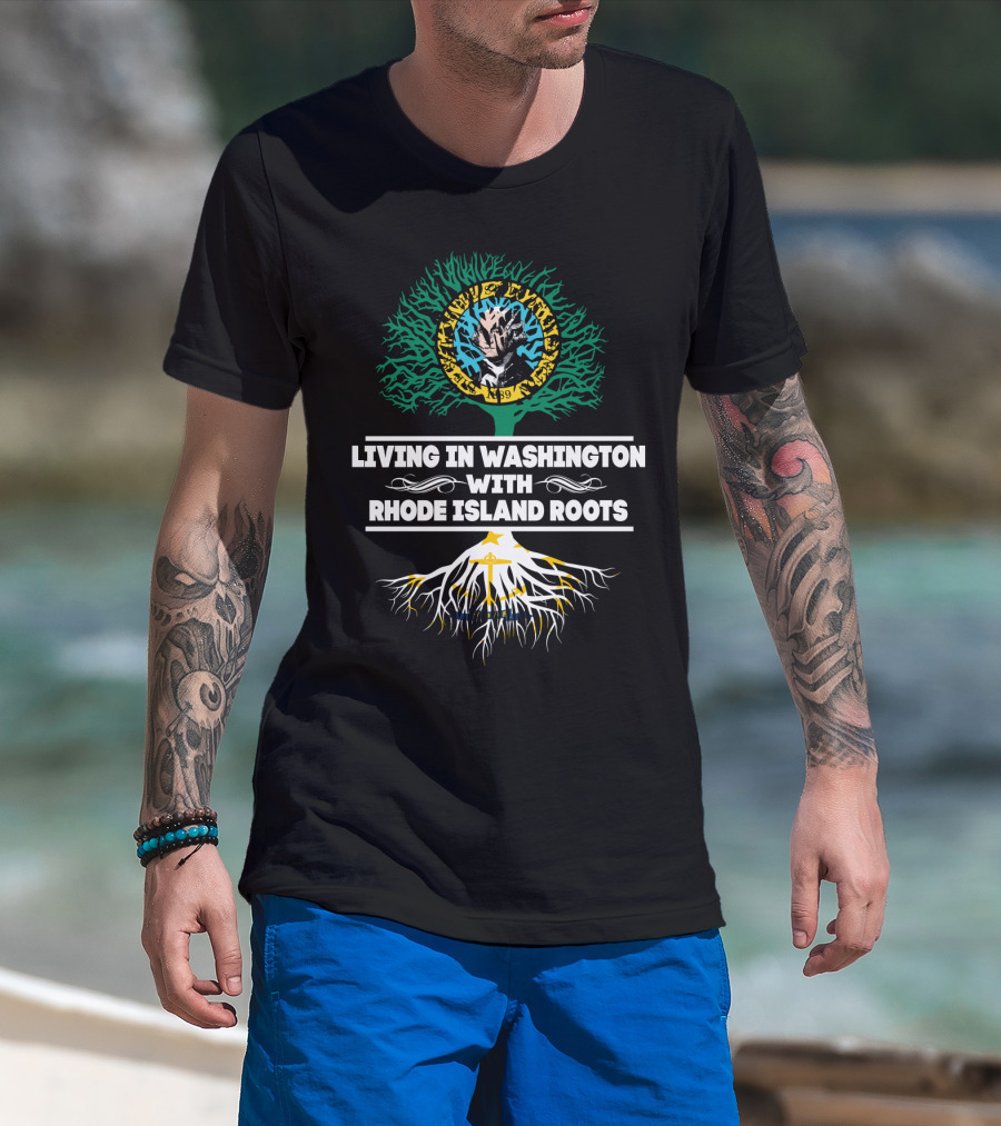 Living In Washington With RHODE ISLAND Roots Showing Celtic Style Tree And Chain Link Circle T-Shirt