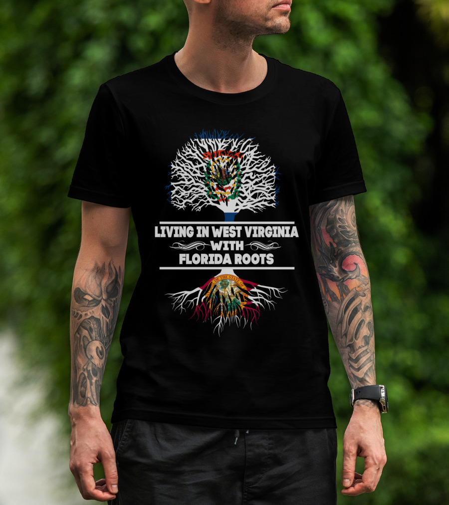 West Virginia Living, Florida Roots Illustrated With State Seals And Tree T-Shirt