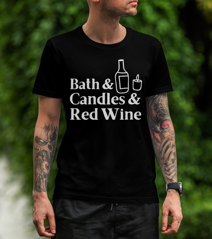 Bath Relaxation With Candles And Red Wine Indulgence Iconography T-Shirt