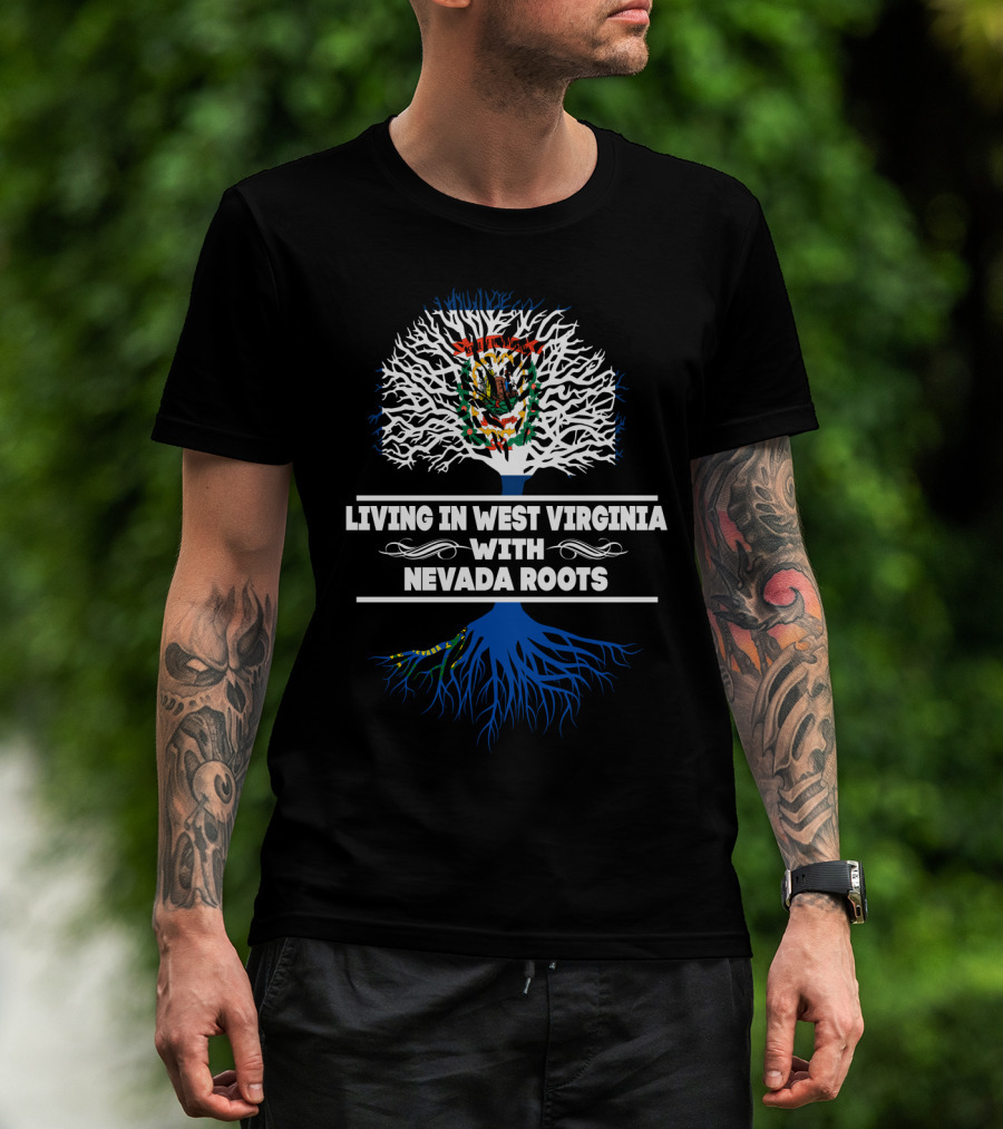 West Virginia Living Nevada Roots Tree Design With State Flag Elements T-Shirt