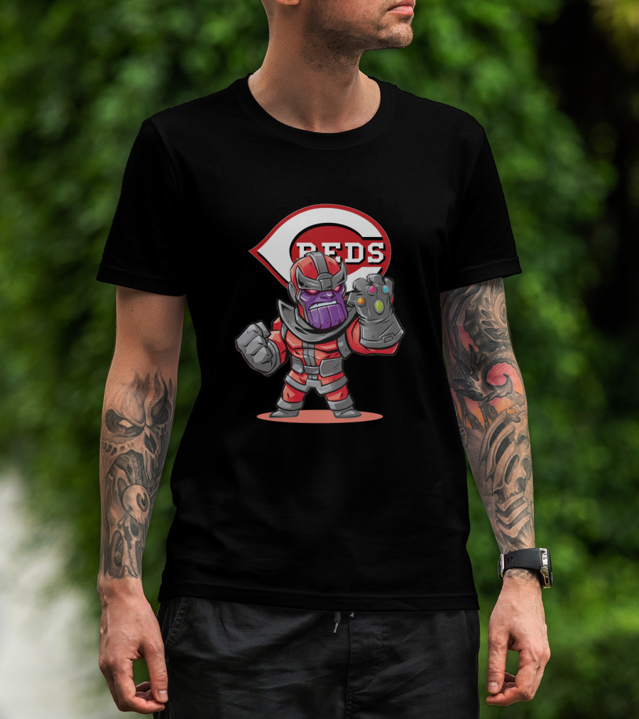Cincinnati Reds Fans Thanos Mashup With Infinity Gauntlet And Baseball T-Shirt