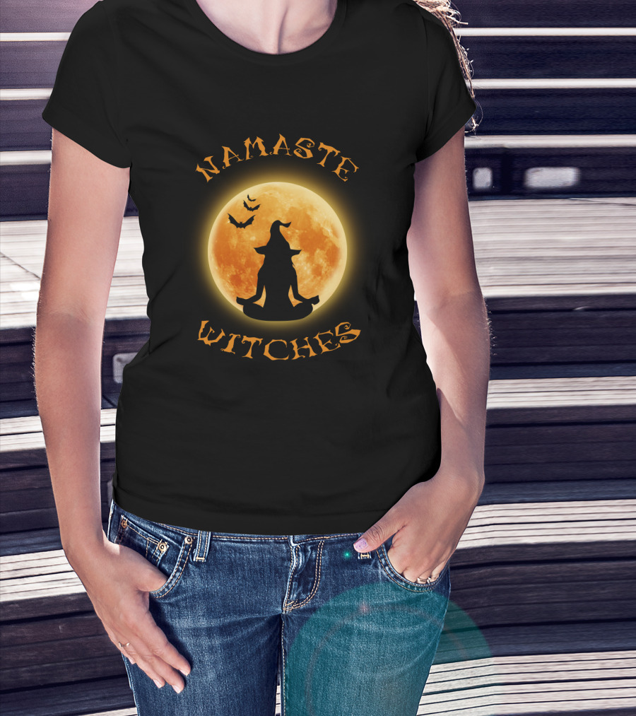 Namaste Witches Full Moon Meditation With Witch Hat And Bats T-Shirt