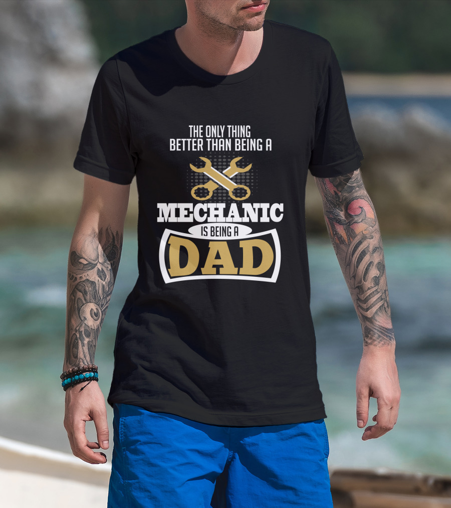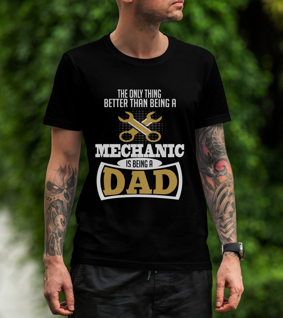 The The Only Thing Better Than Being a Mechanic is Being a Dad with Wrench Iconography T-shirt is designed for everyday wear and a consistent fit. Fabric is pre-shrunk ring-spun cotton with durable stitching. See the size chart below for exact measurements.