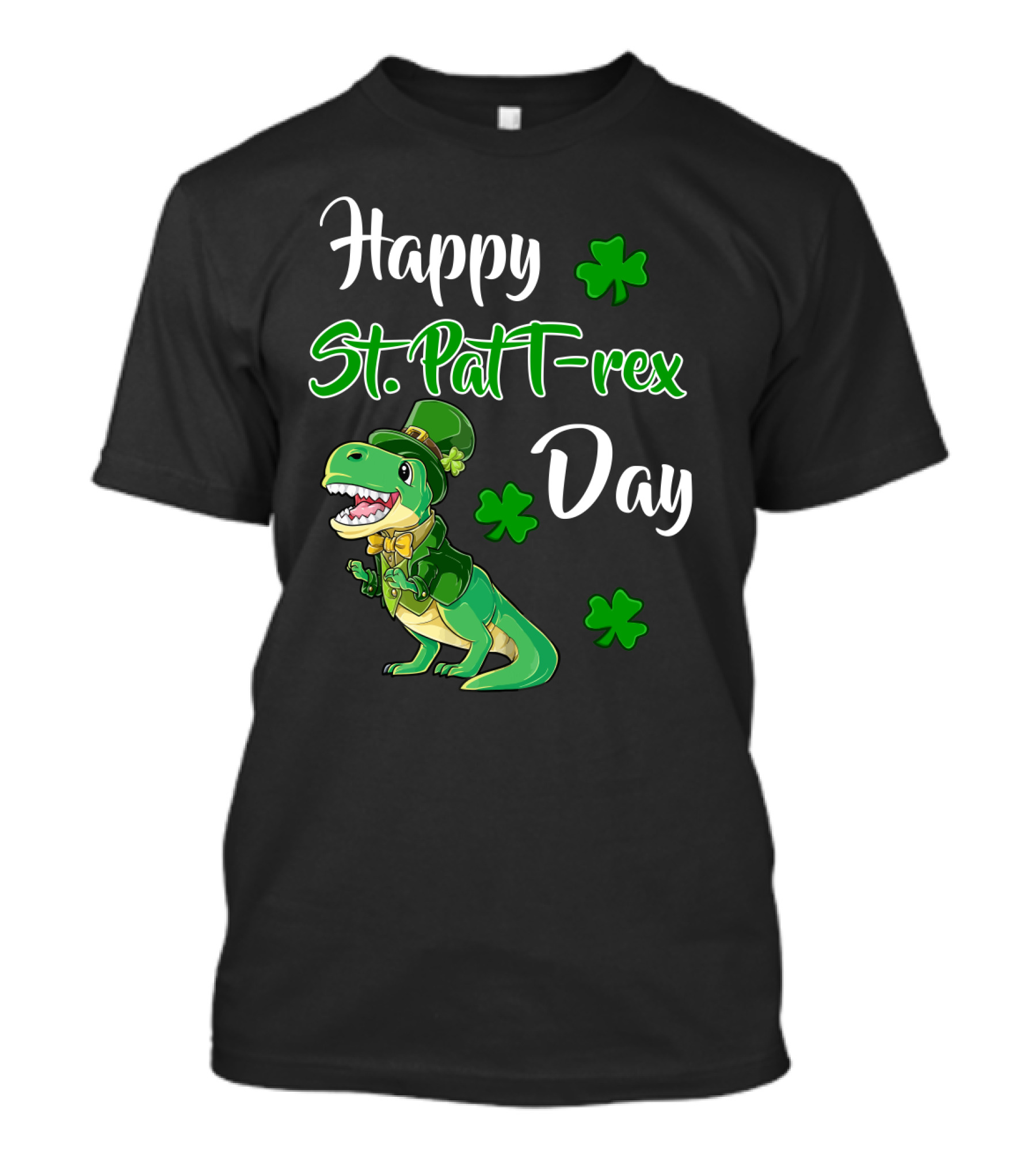 The Happy St. Patrick's Day T-Rex Dinosaur with Shamrocks T-shirt is designed for everyday wear and a consistent fit. Fabric is pre-shrunk ring-spun cotton with durable stitching. See the size chart below for exact measurements.