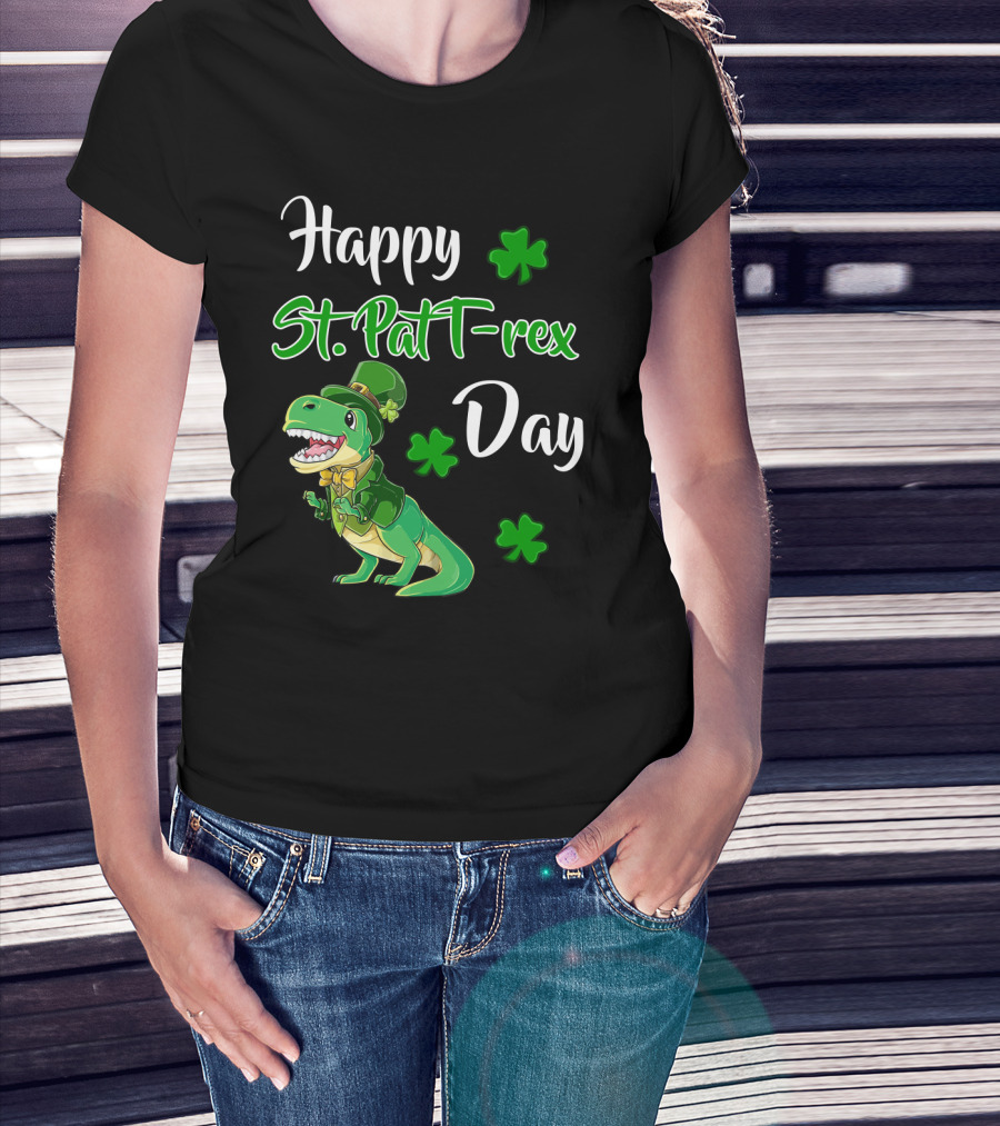 Happy St. Patrick's Day T-Rex Dinosaur With Shamrocks T-Shirt