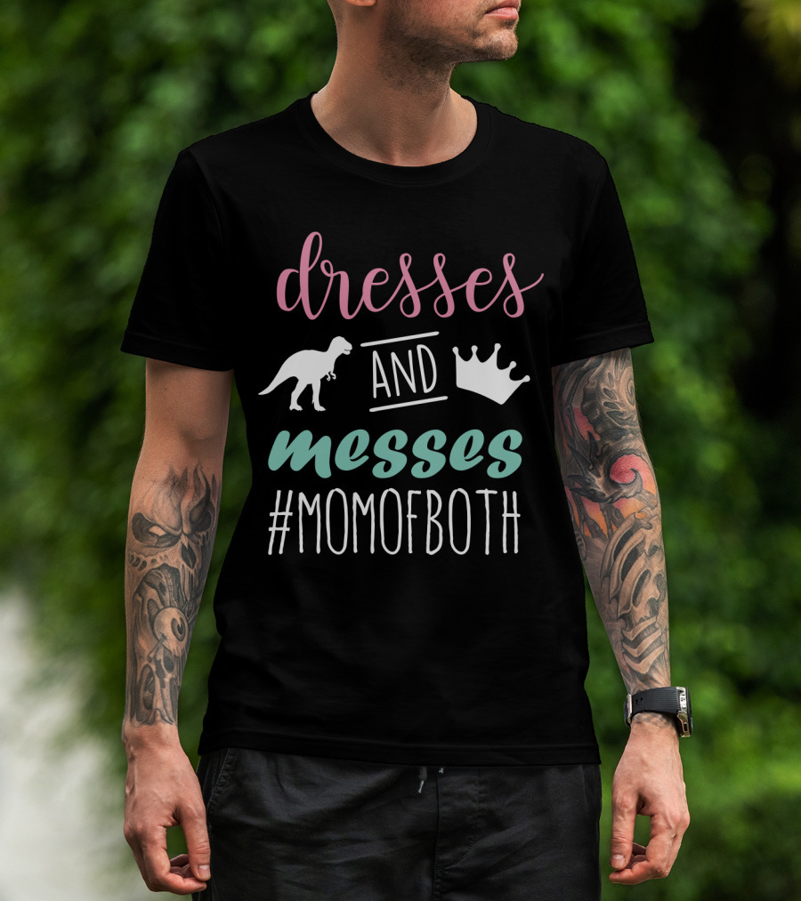 The Dresses and Messes Dinosaur Crown #Momofboth T-shirt is designed for everyday wear and a consistent fit. Fabric is pre-shrunk ring-spun cotton with durable stitching. See the size chart below for exact measurements.
