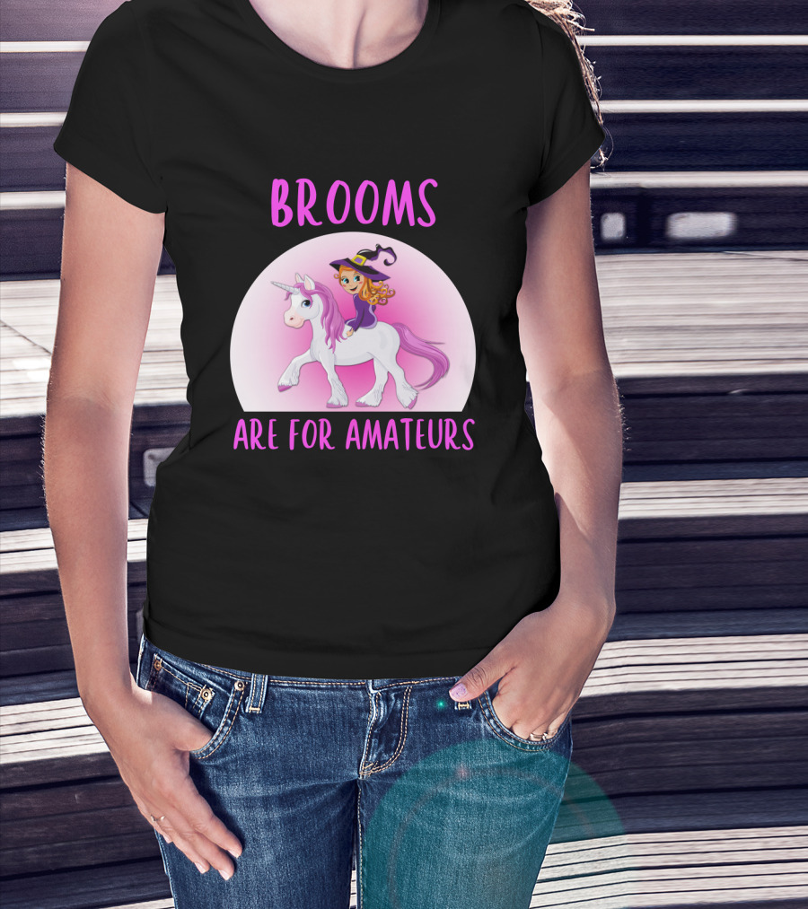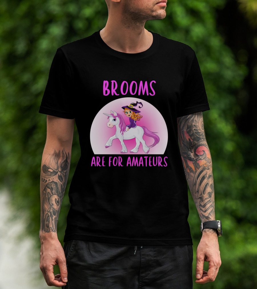 Brooms Are For Amateurs Witch Riding Unicorn Fantasy T-Shirt