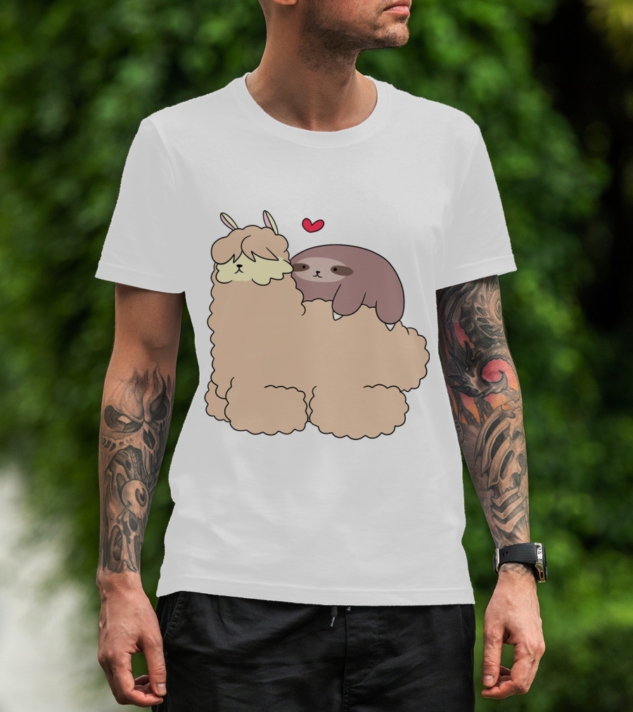 Sloth Loves Alpaca Heartwarming Cuddle Embrace With Cute Llama Vibes T-Shirt