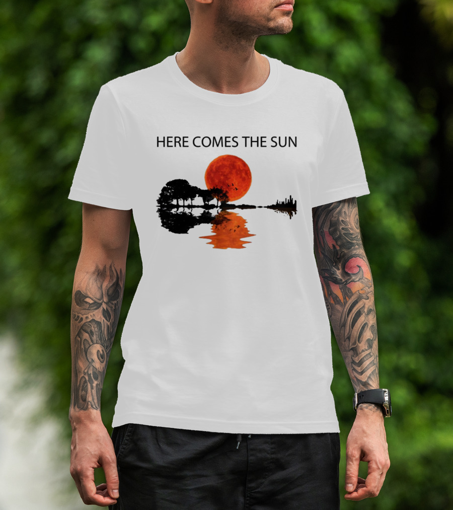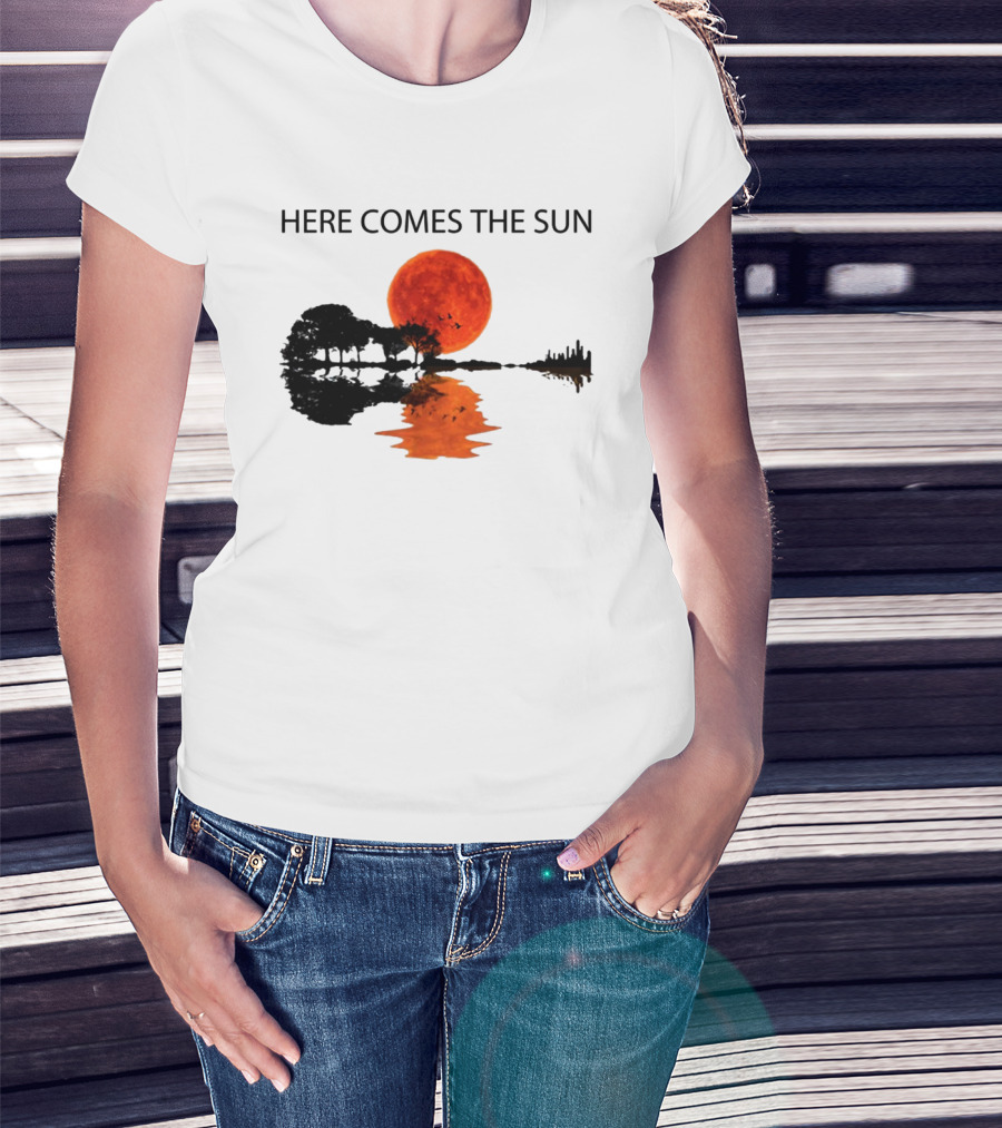 Here Comes The Sun Sunset Reflection Trees Silhouette Skyline Moon T-Shirt