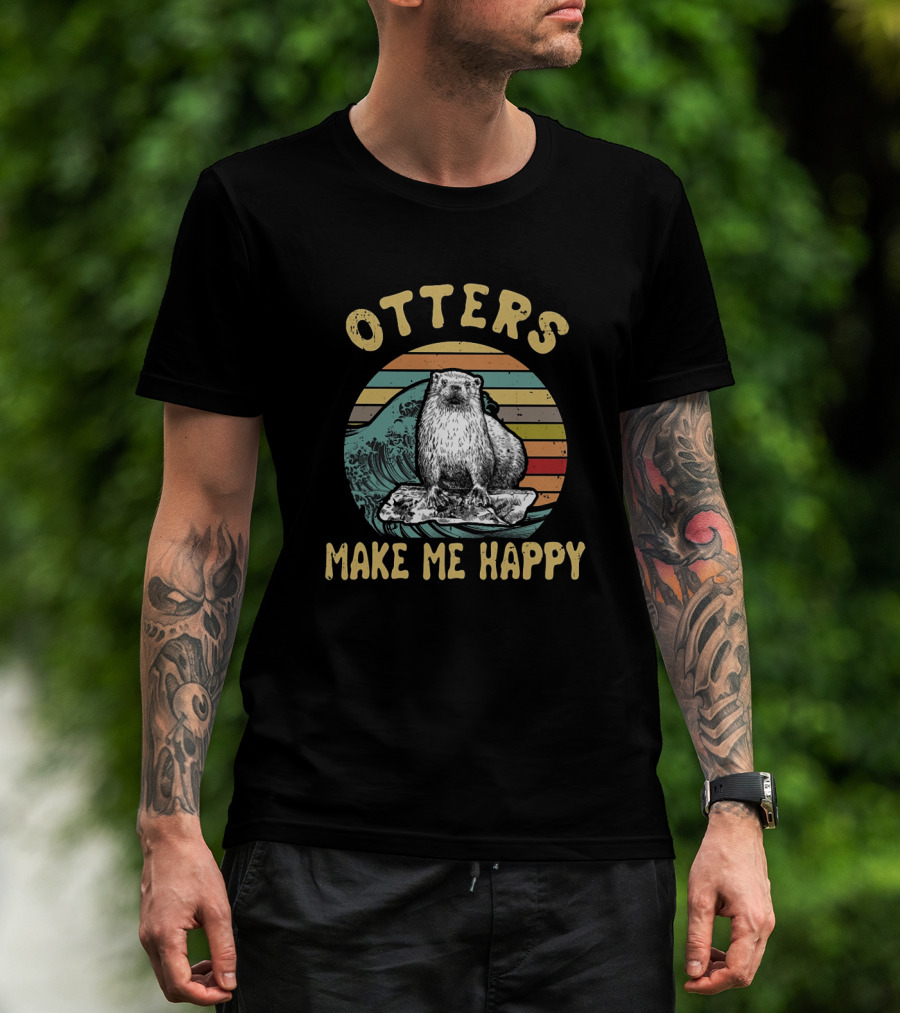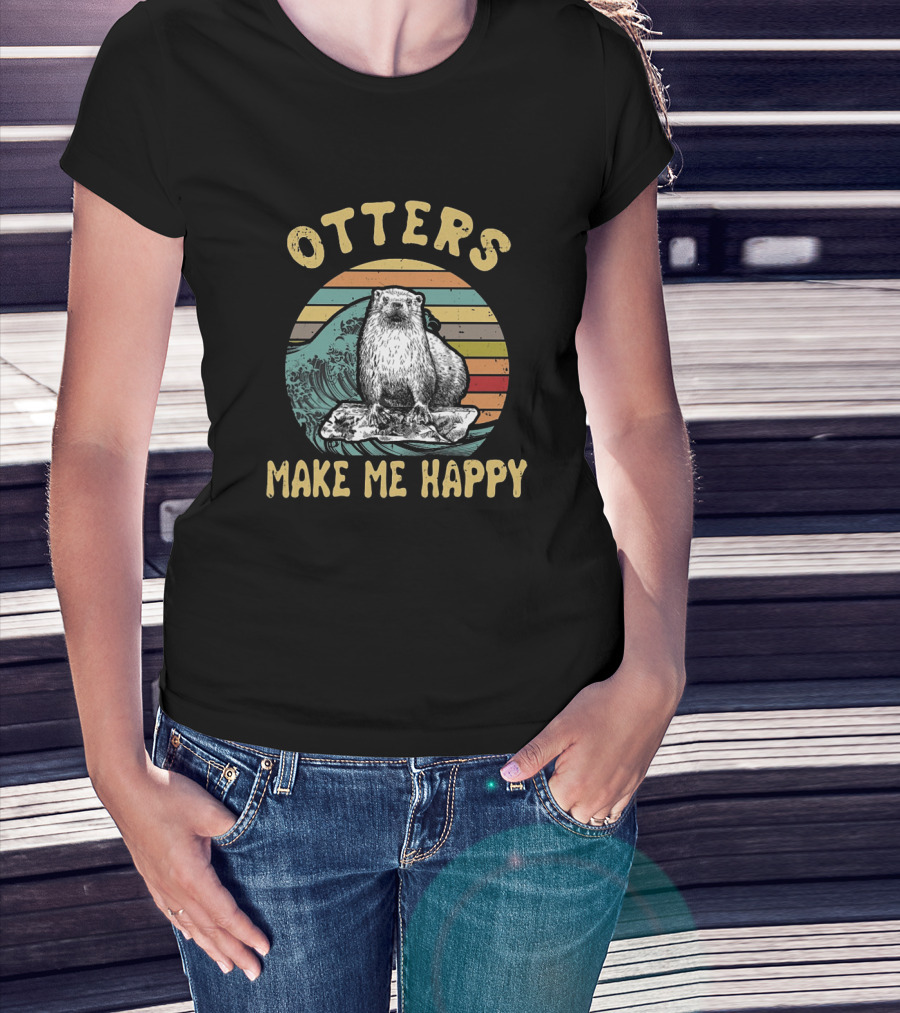 Otters Make Me Happy Vintage Wave T-Shirt