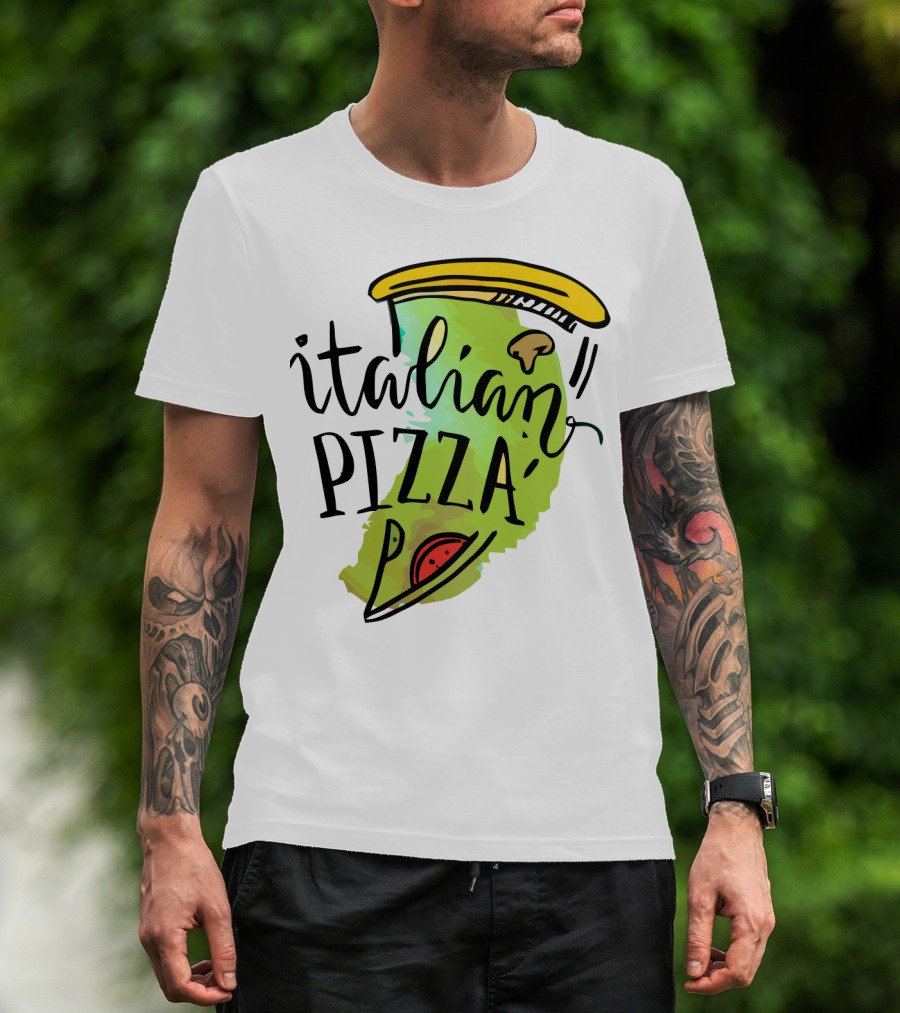 The Italian Pizza Slice with Cheese and Pepperoni T-shirt is designed for everyday wear and a consistent fit. Fabric is pre-shrunk ring-spun cotton with durable stitching. See the size chart below for exact measurements.