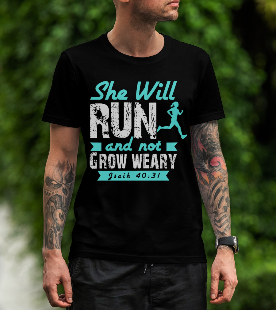 She Will Run And Not Grow Weary Isaiah 40:31 Running Motivation T-Shirt
