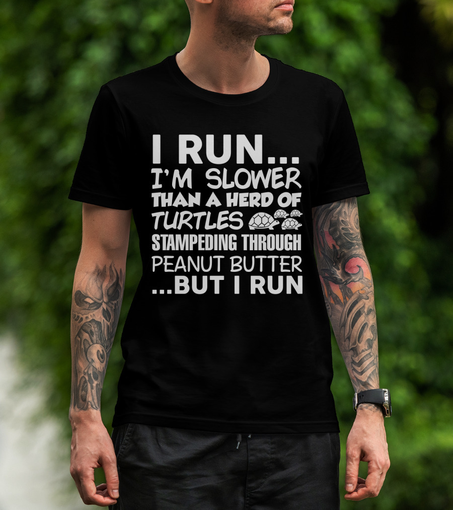 I Run I'm Slower Than A Herd Of Turtles Stampededing Through Peanut Butter But I Run T-Shirt